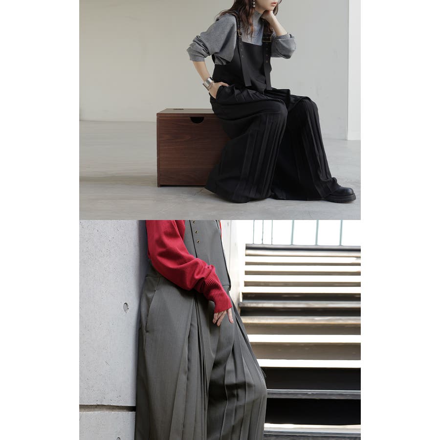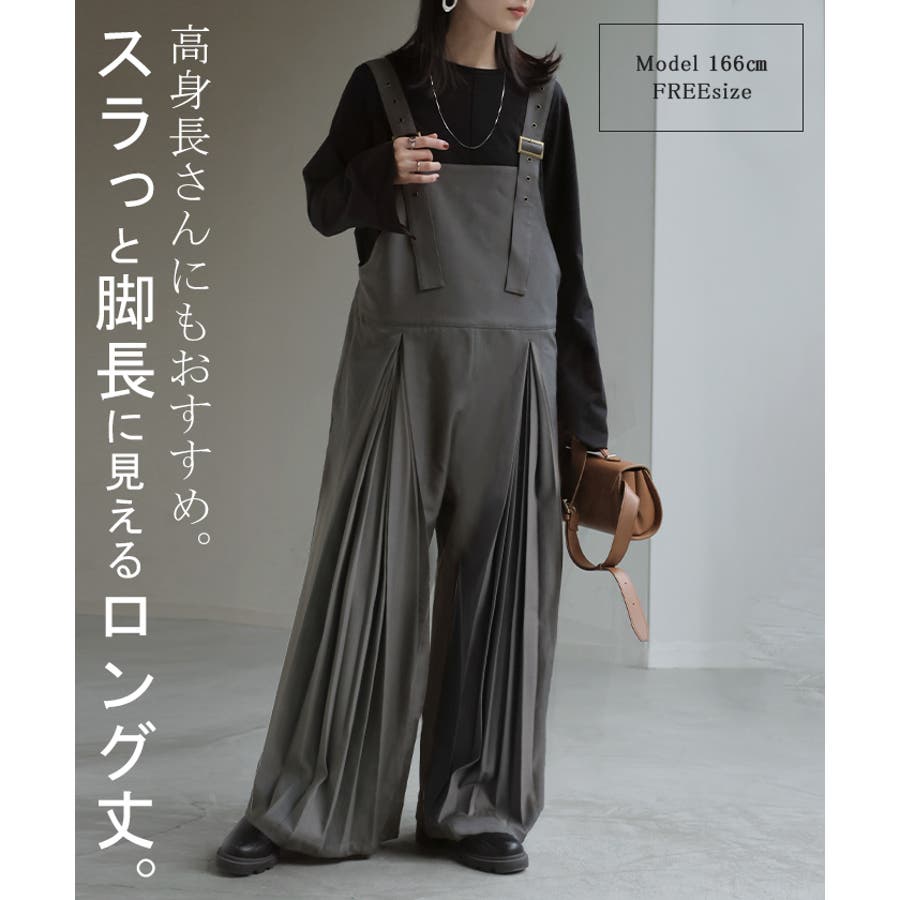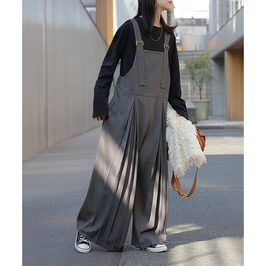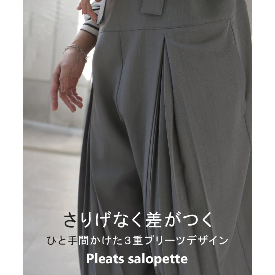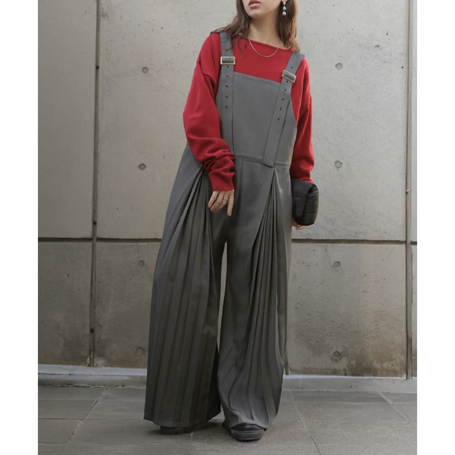スタイルに躍動感をプラスするプリーツワイドサロペットです。