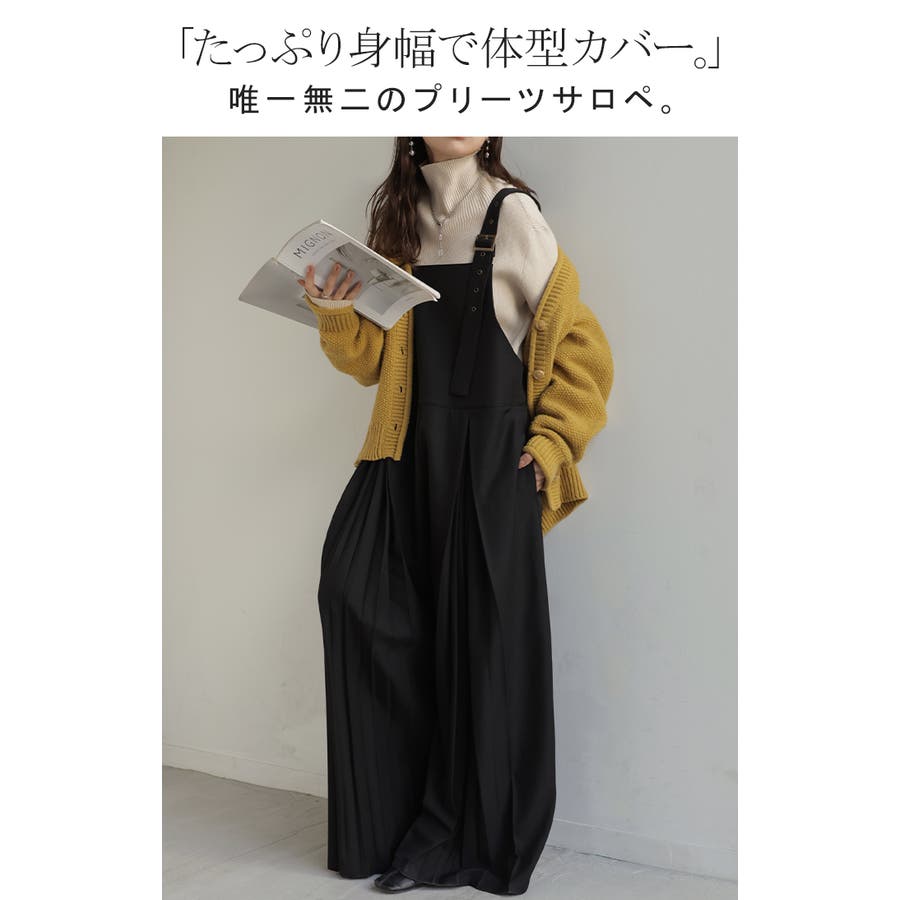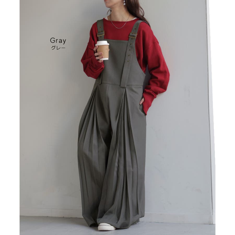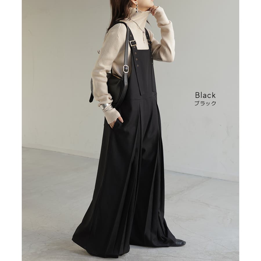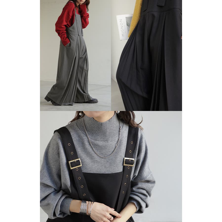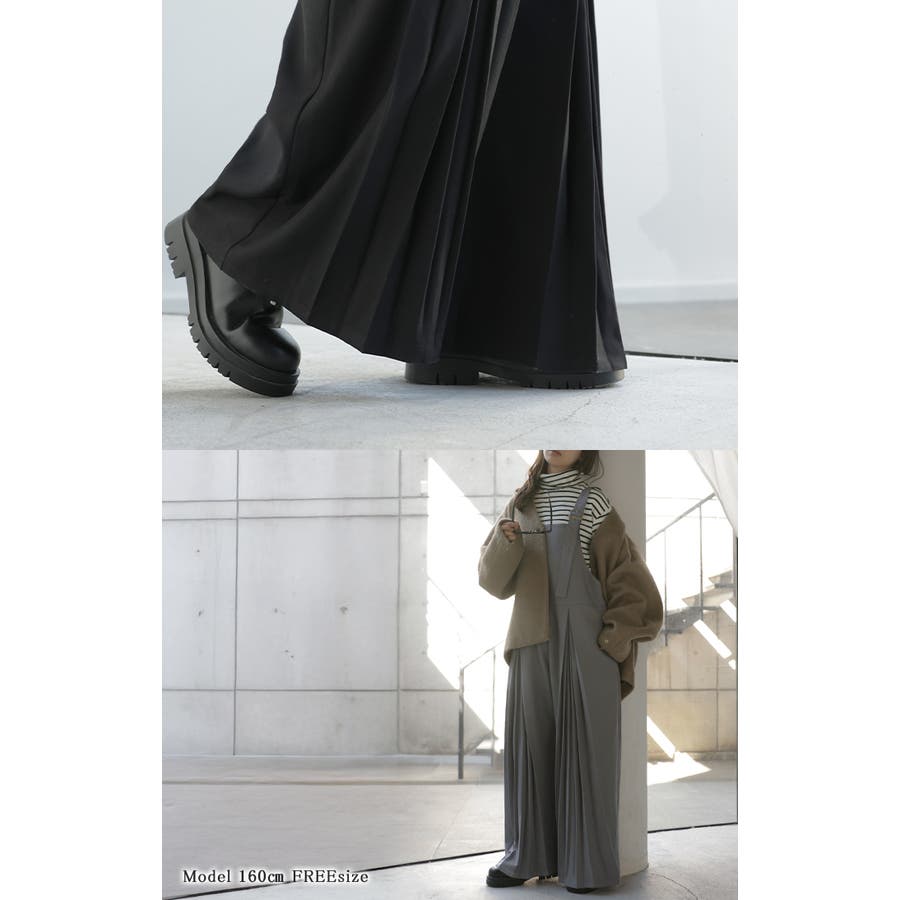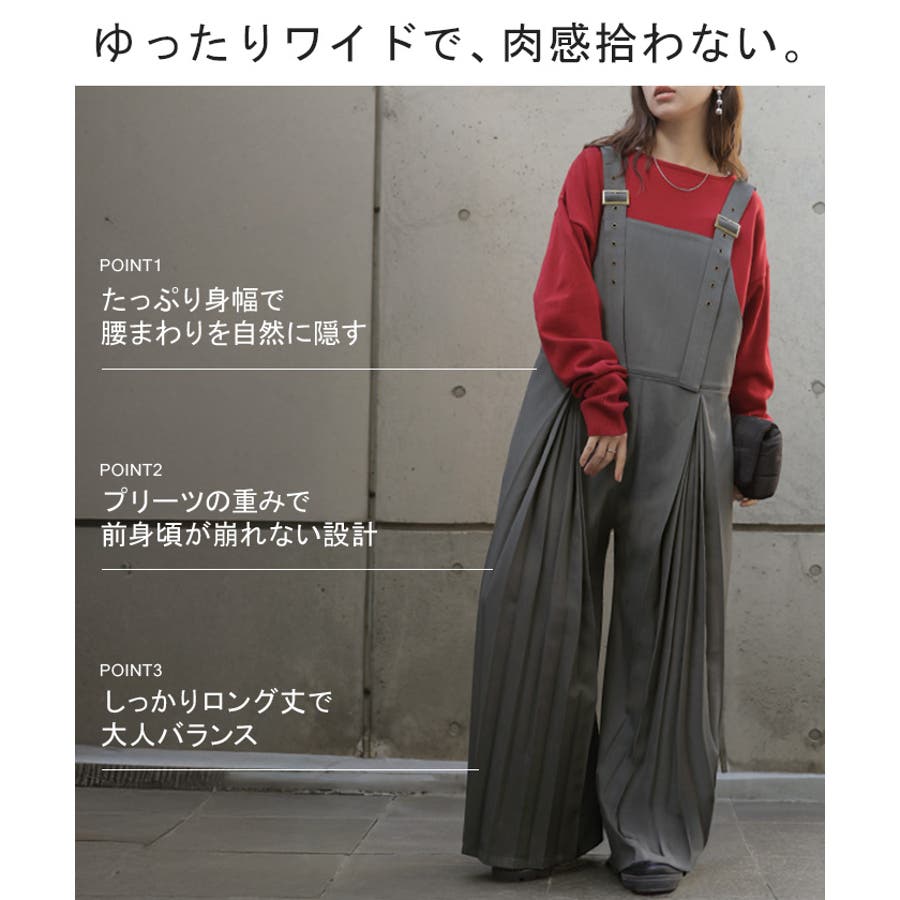 スタイルに躍動感をプラスするプリーツワイドサロペットです。