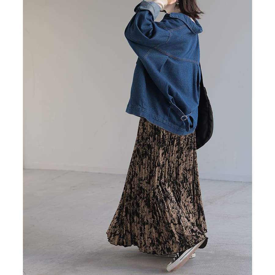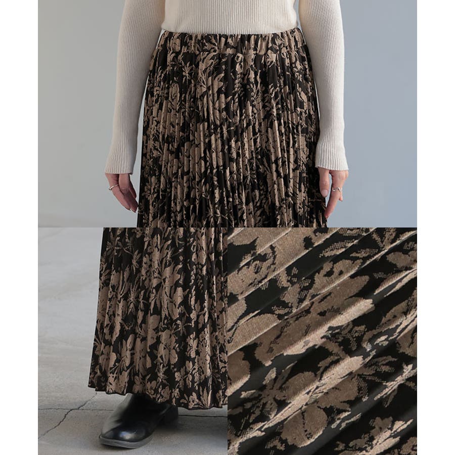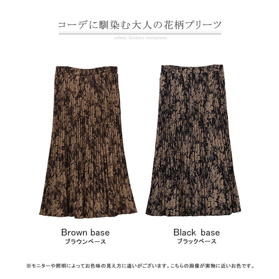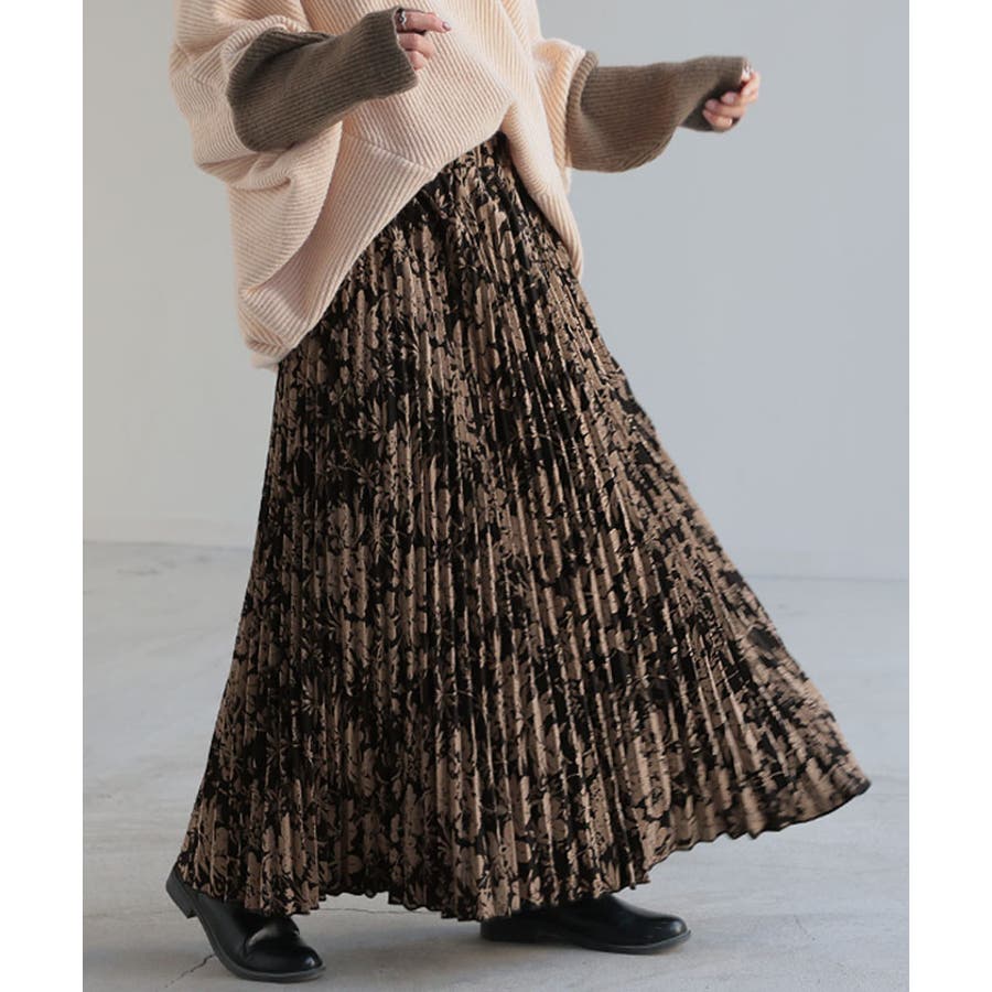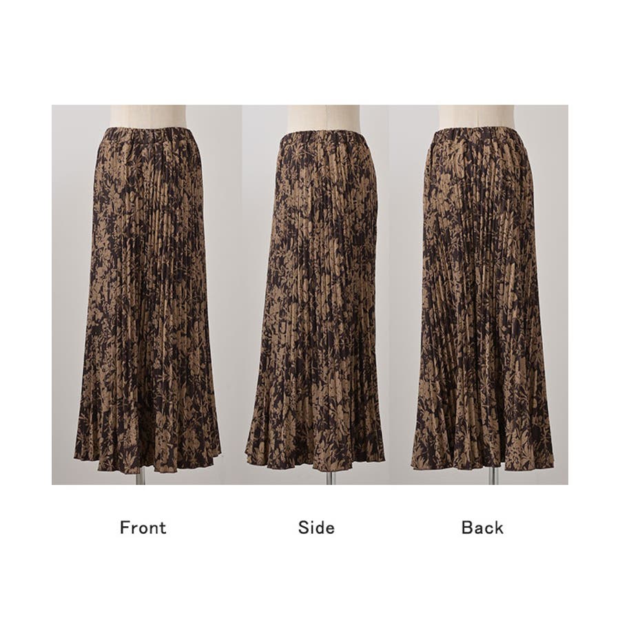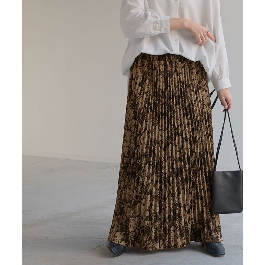 甘さを控えたフラワープリントがスタイリングを華やかにするプリーツスカートです。