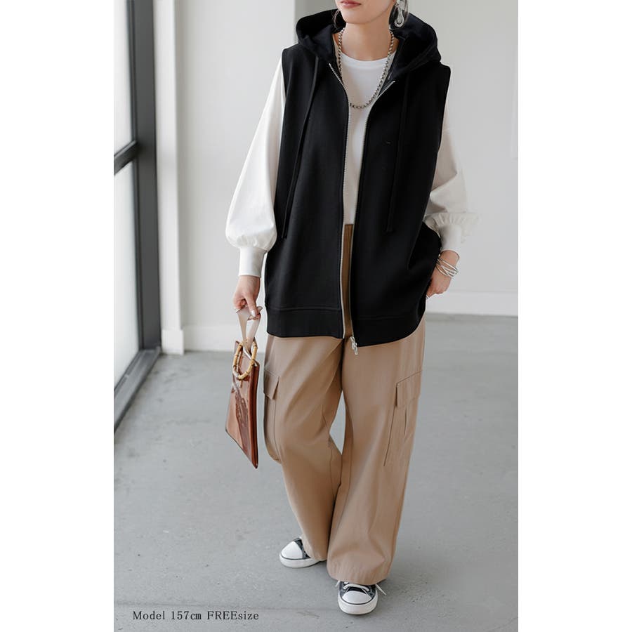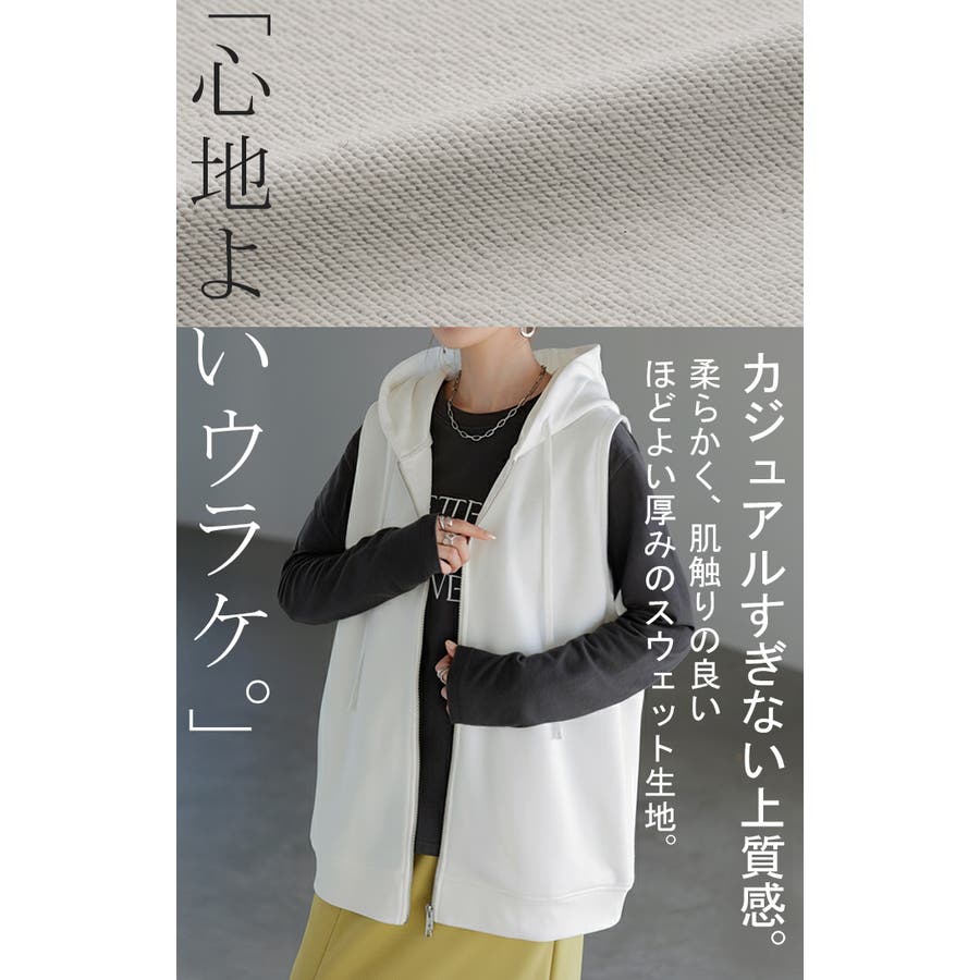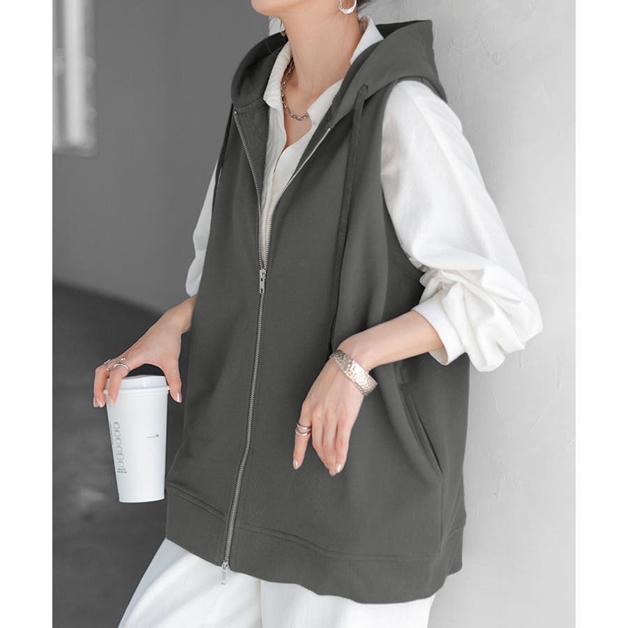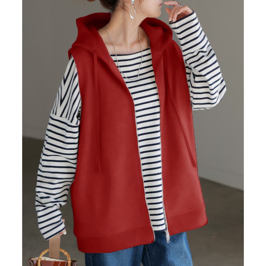 簡単にレイヤードスタイルを取り入れるスウェットベストパーカーです。