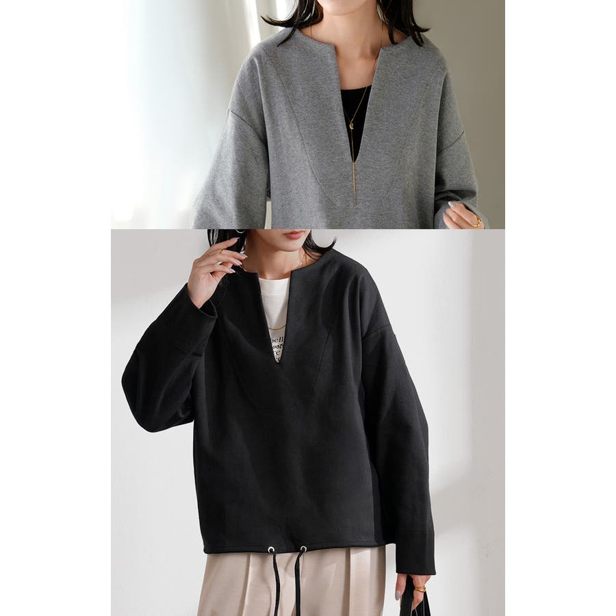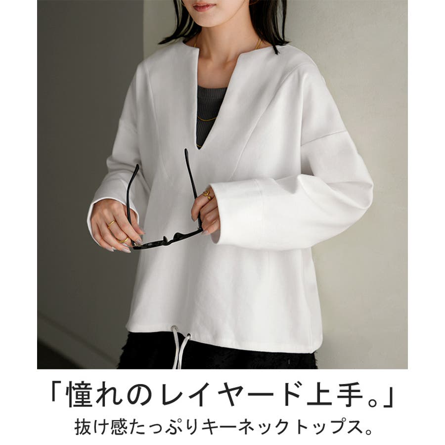 デコルテが綺麗に見えて上品な肌見せが叶うキーネックトップスです。