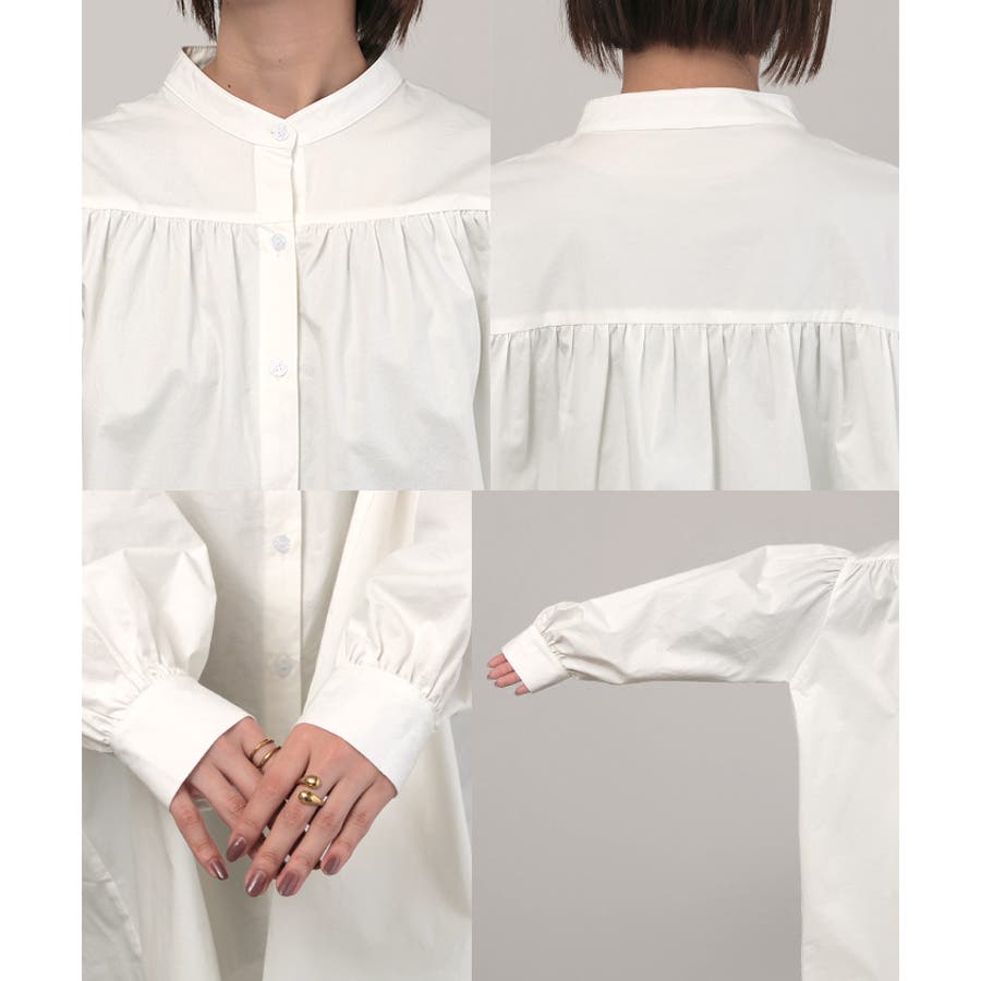 バンドカラーにすることでで首元がすっきり見え、こなれ感を演出します。