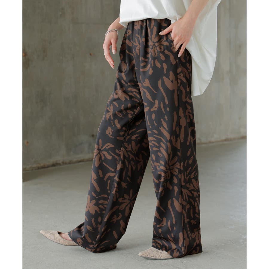 大胆にスタイリッシュに総柄をプリントしたワイドパンツです。