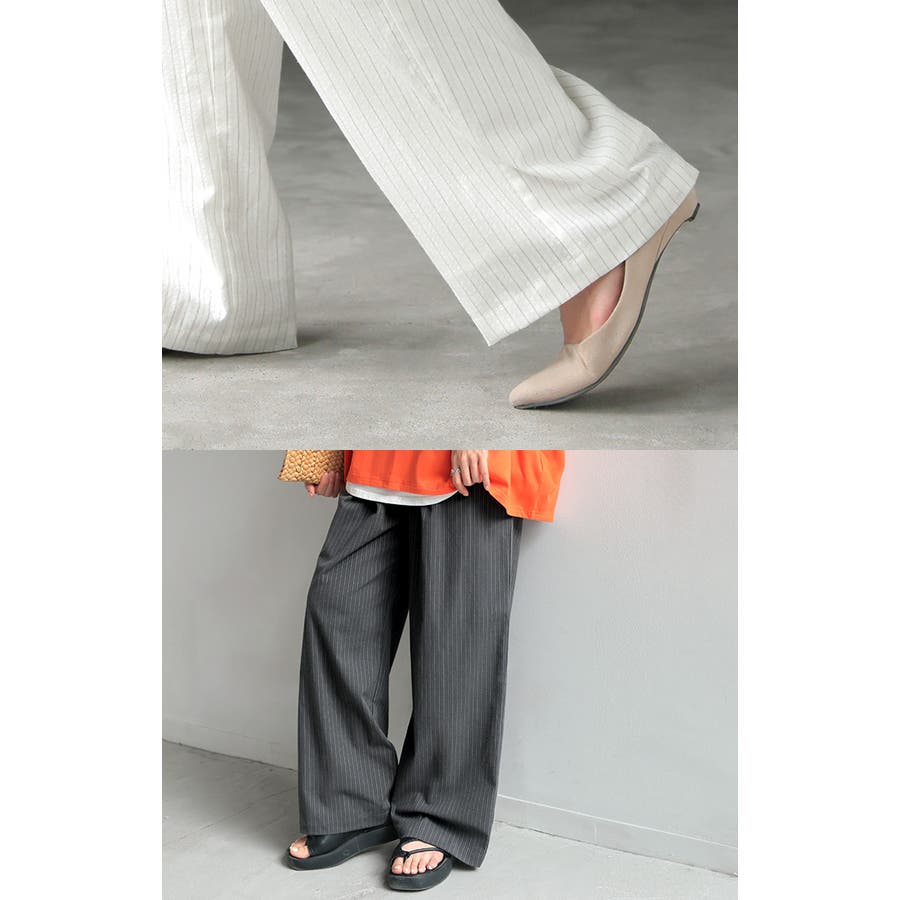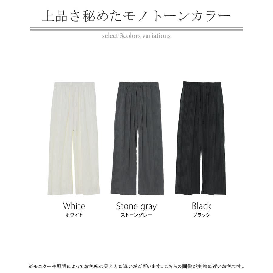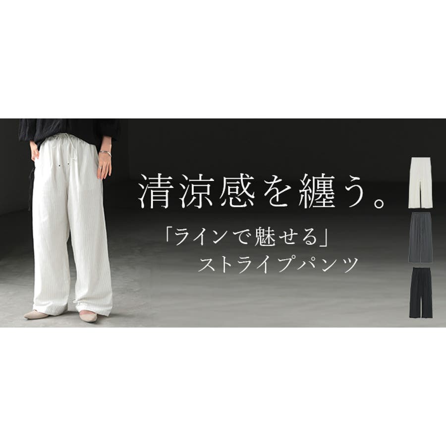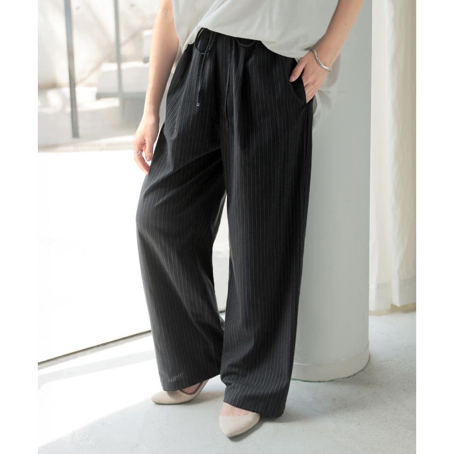 リラクシーな履き心地のストライプ柄イージーワイドパンツです。