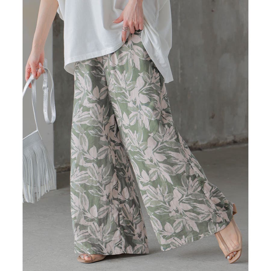 リゾート感たっぷりのプリントで主役級の存在感あるワイドパンツです。