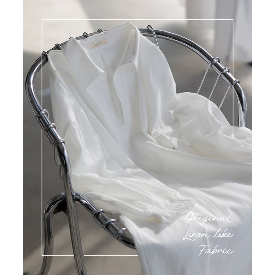 シルエットと麻混のさらさら素材が相まって軽い着心地のワンピースです。