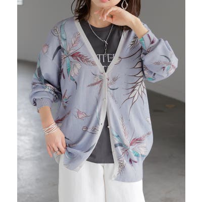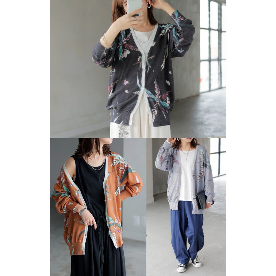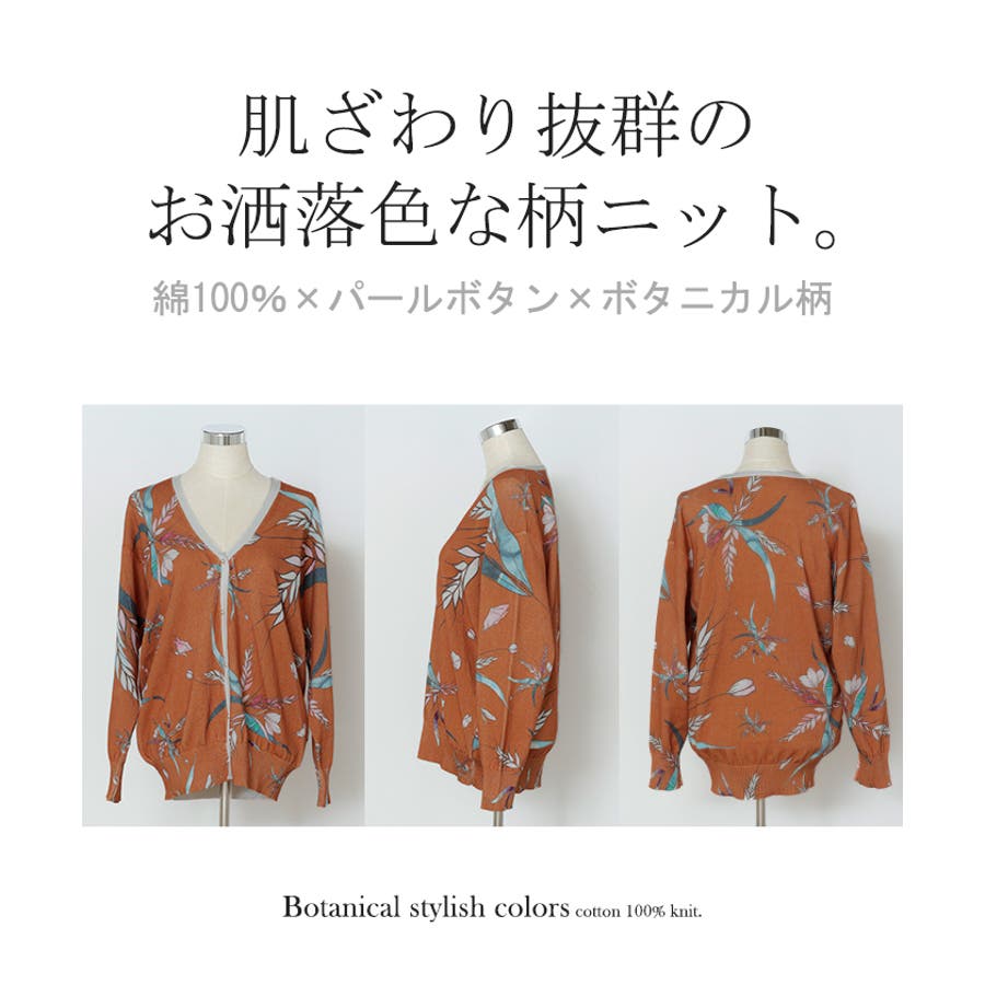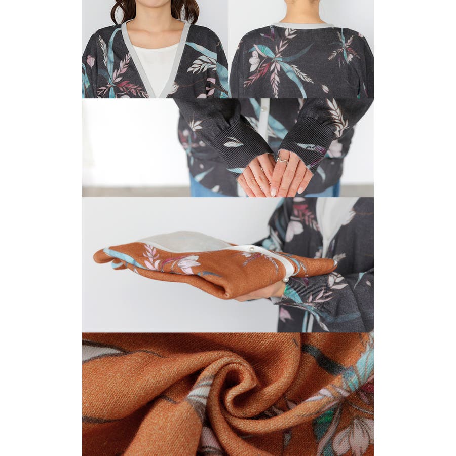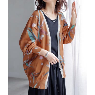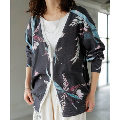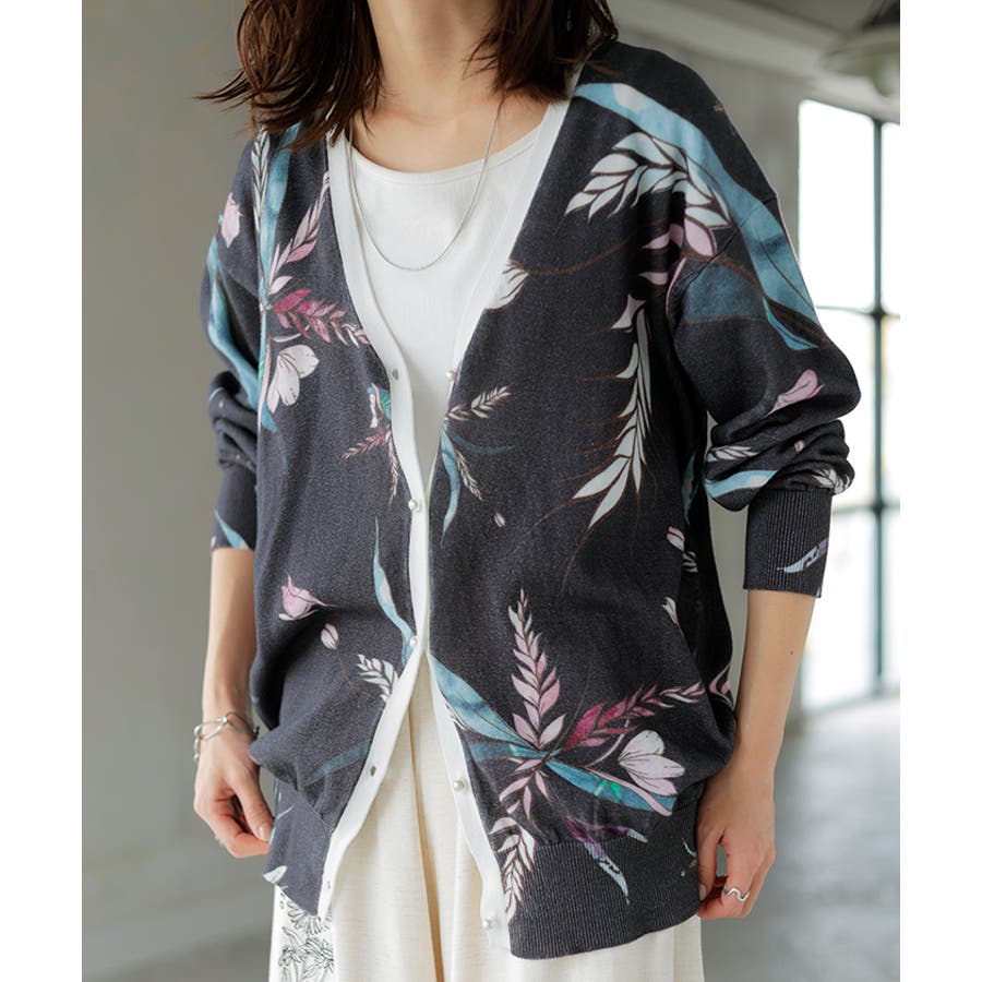 雰囲気ある花柄が目を惹くニットカーディガンです。