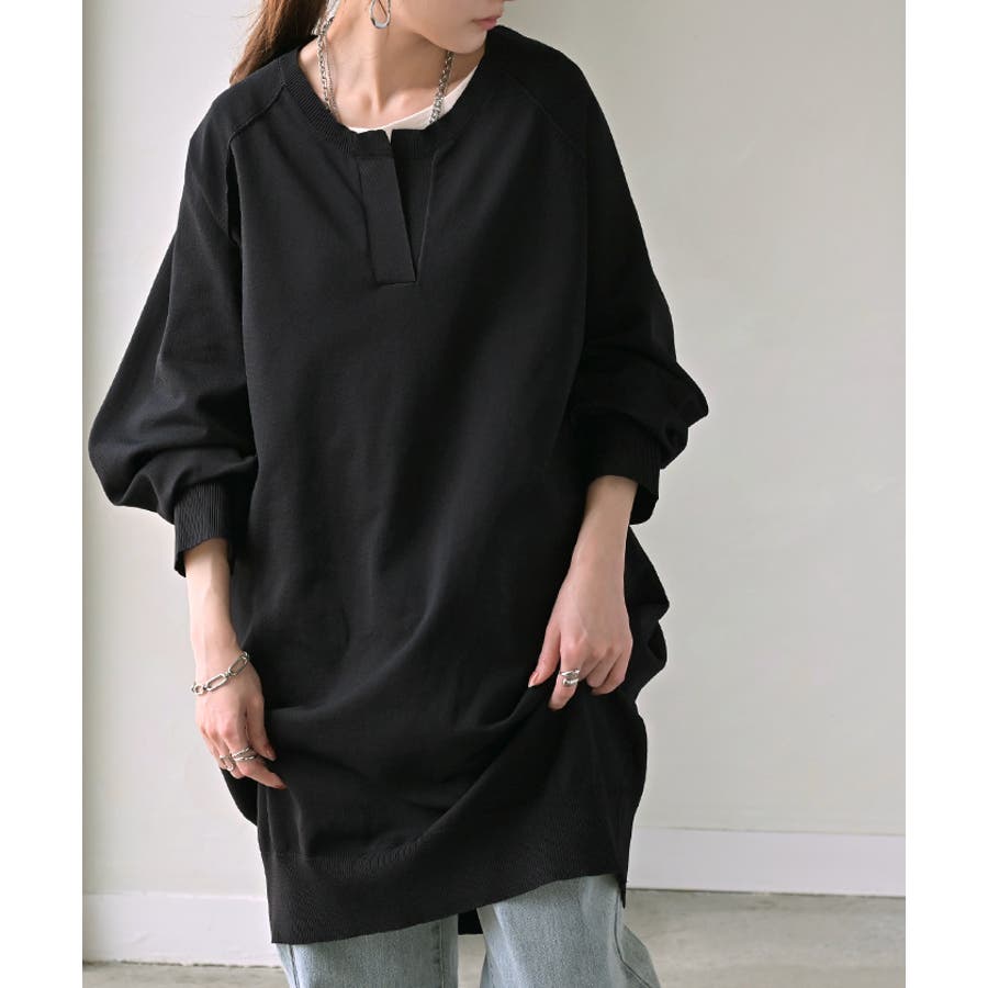 キーネックデザインがレディライクな抜け感あるロングニットです。
