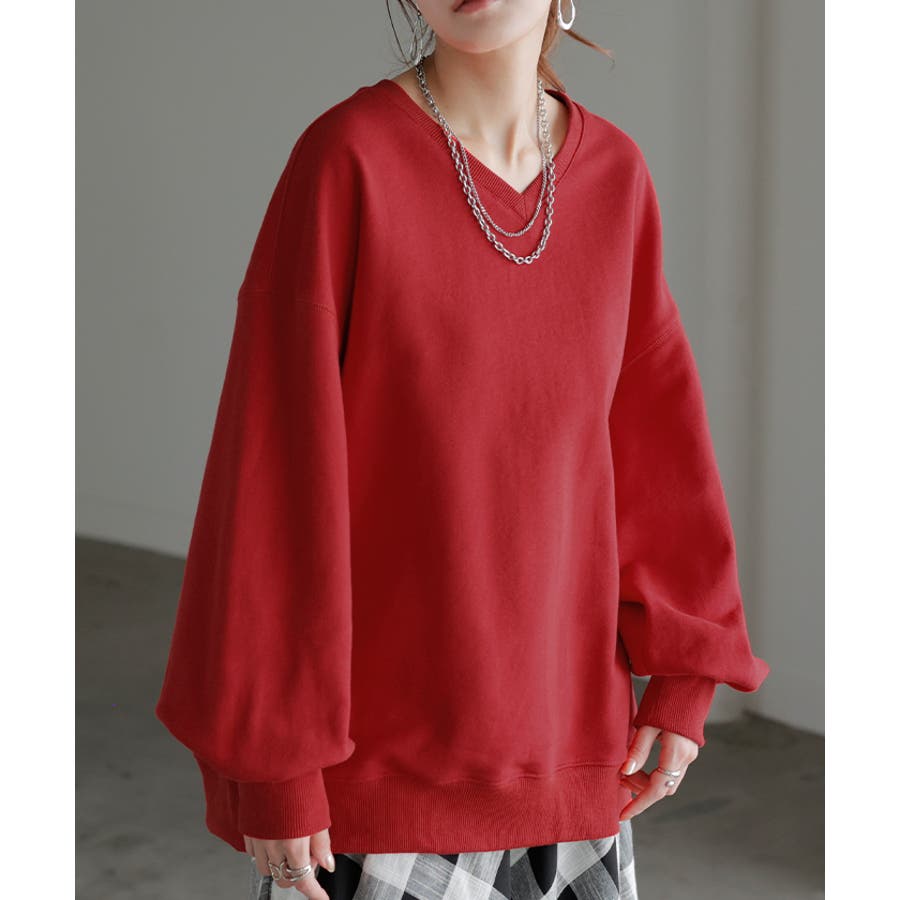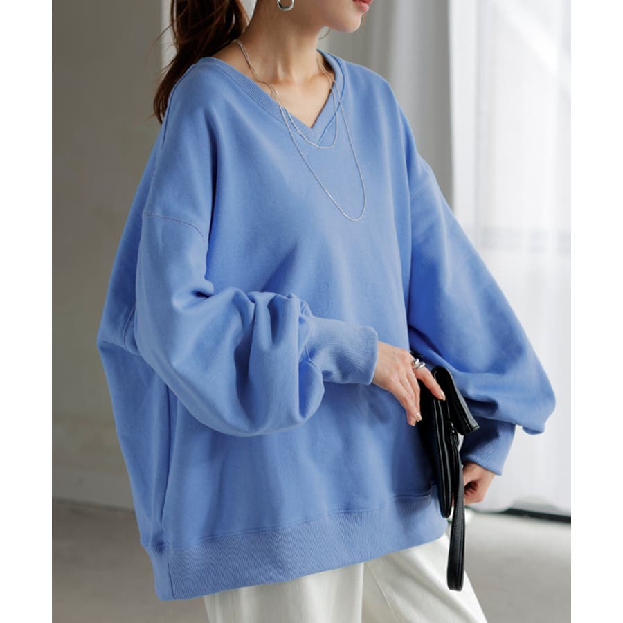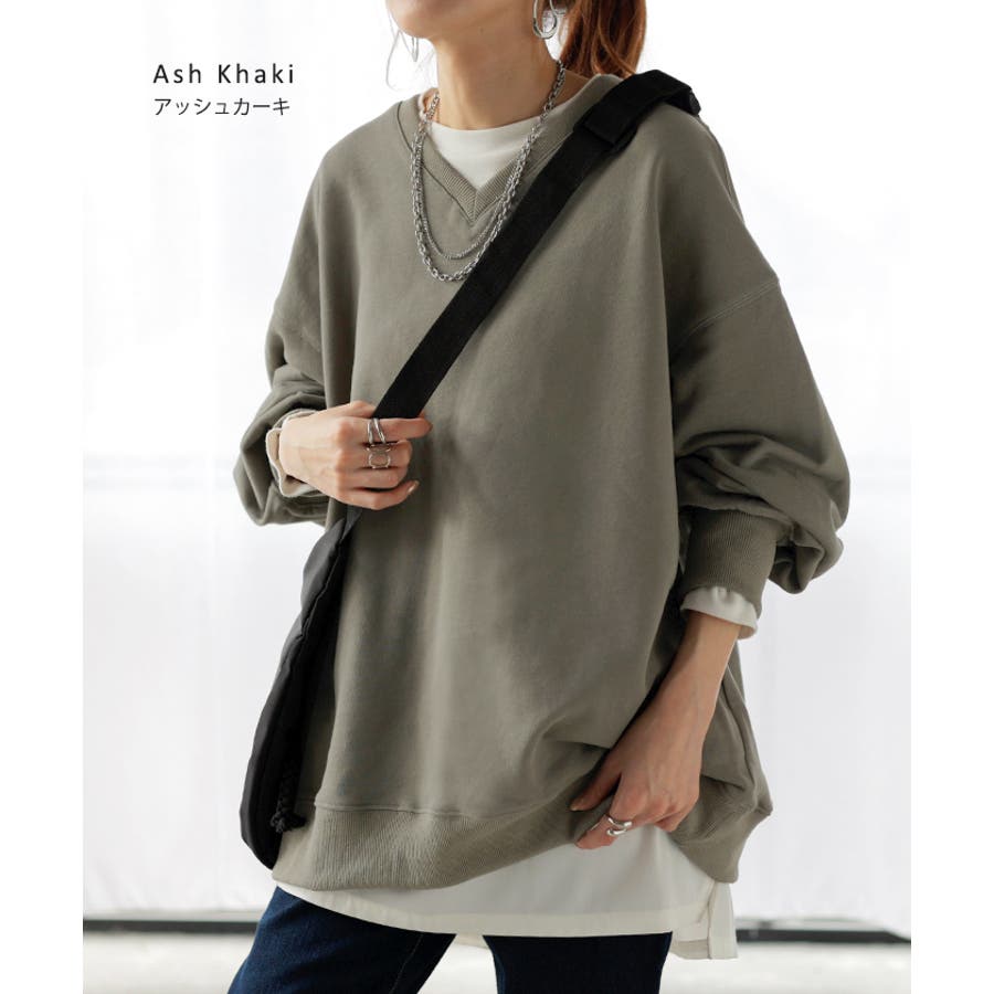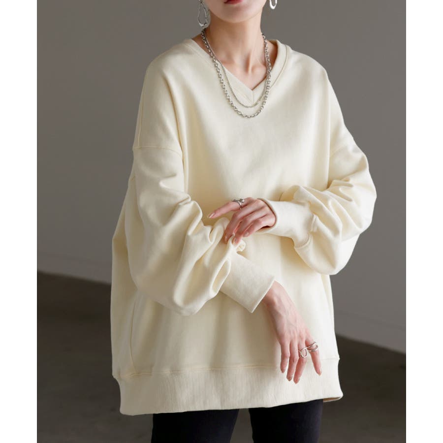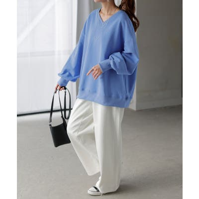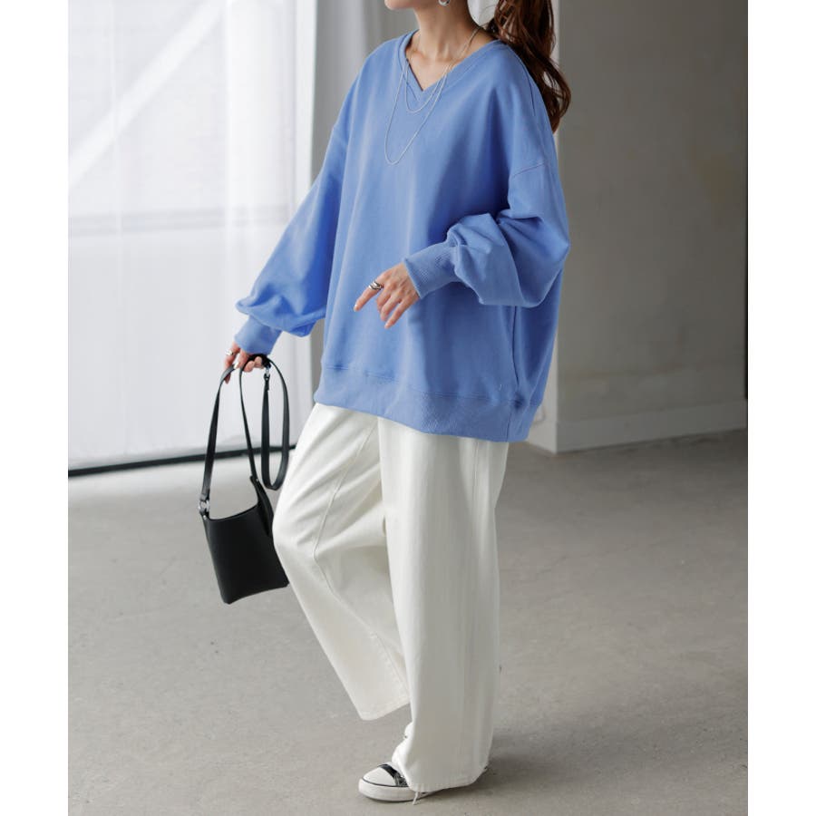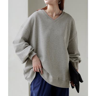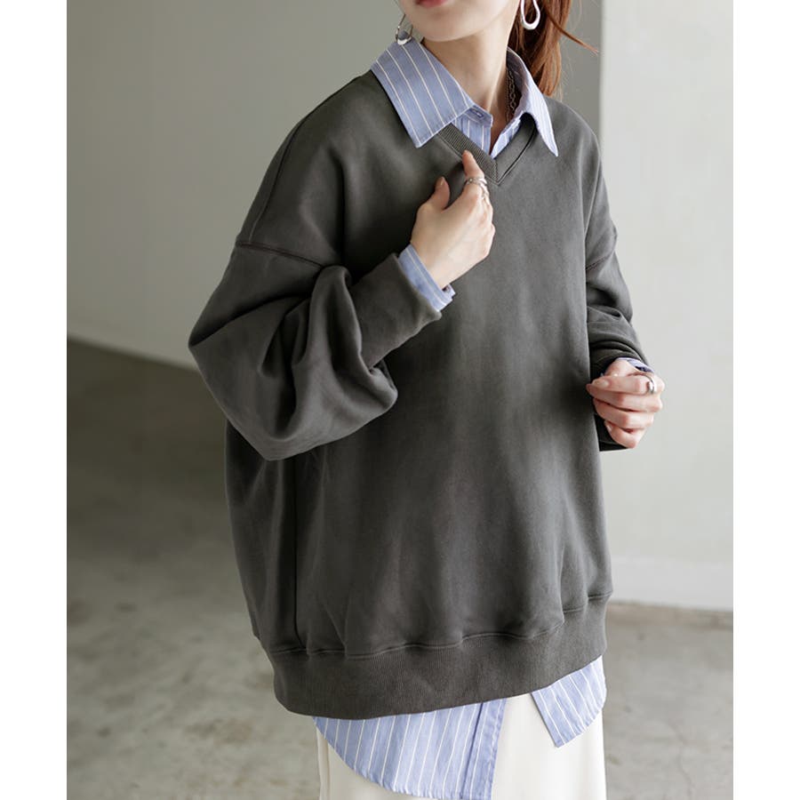 Vネックがスッキリとした印象を与えてくるスウェットプルオーバーです。