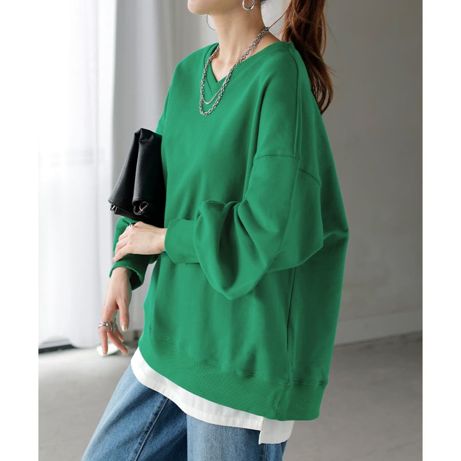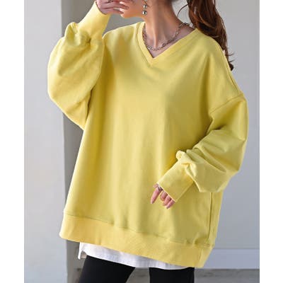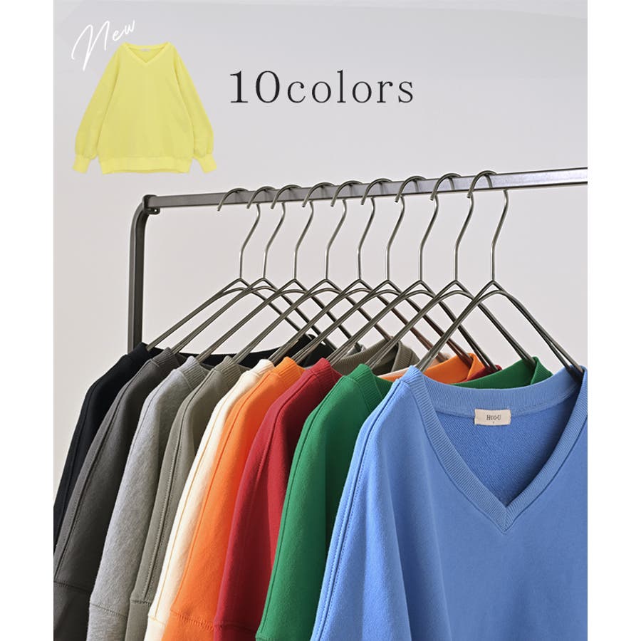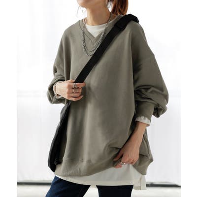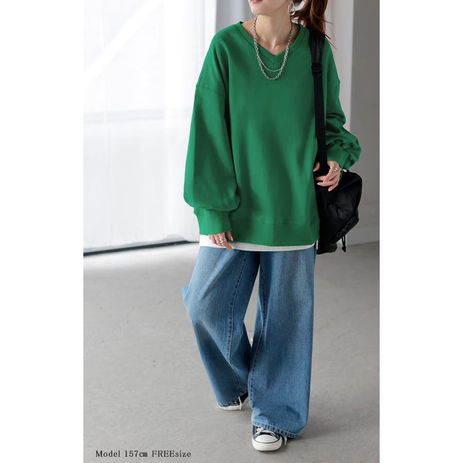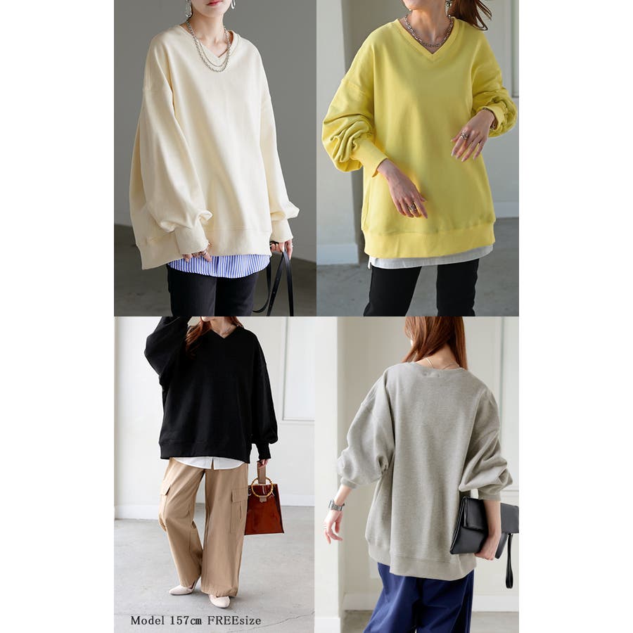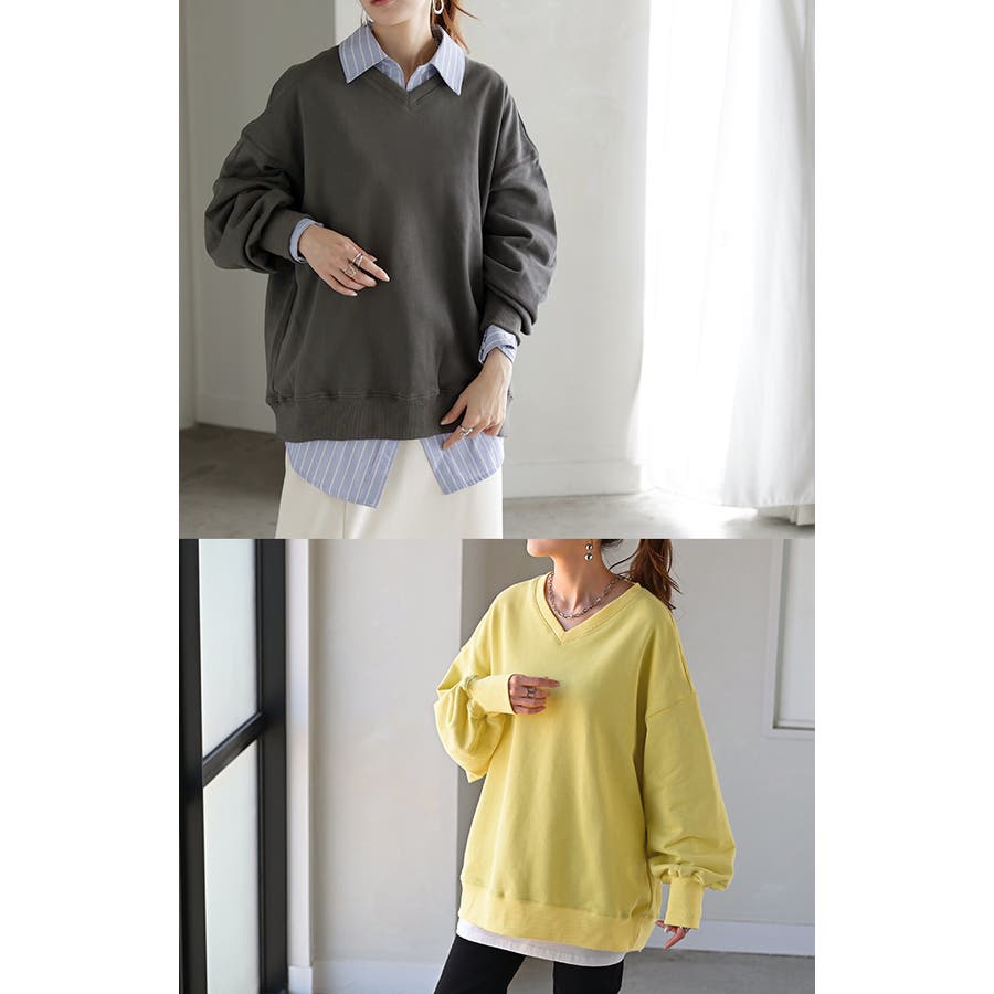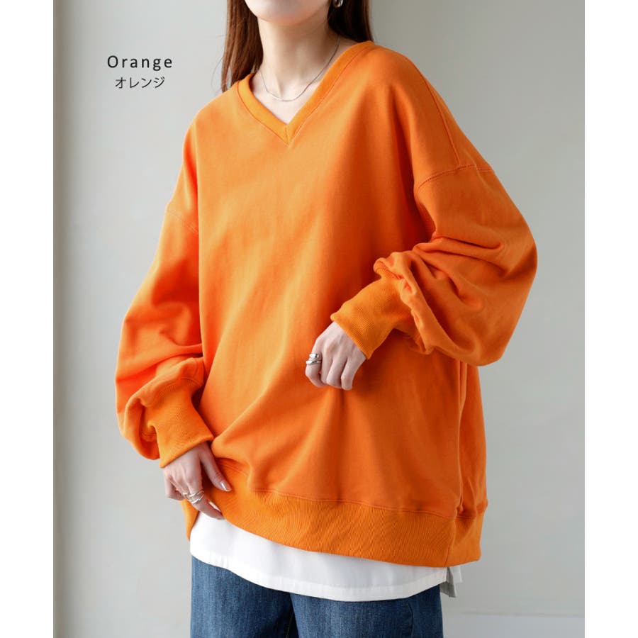 Vネックがスッキリとした印象を与えてくるスウェットプルオーバーです。