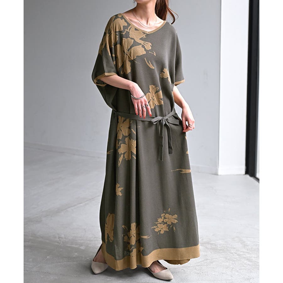 ざっくり着られて花柄が目を惹くニットワンピースです。