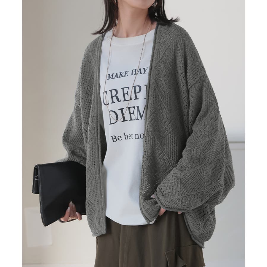 程よい抜け感を与える透かし編みニットカーディガンです。
