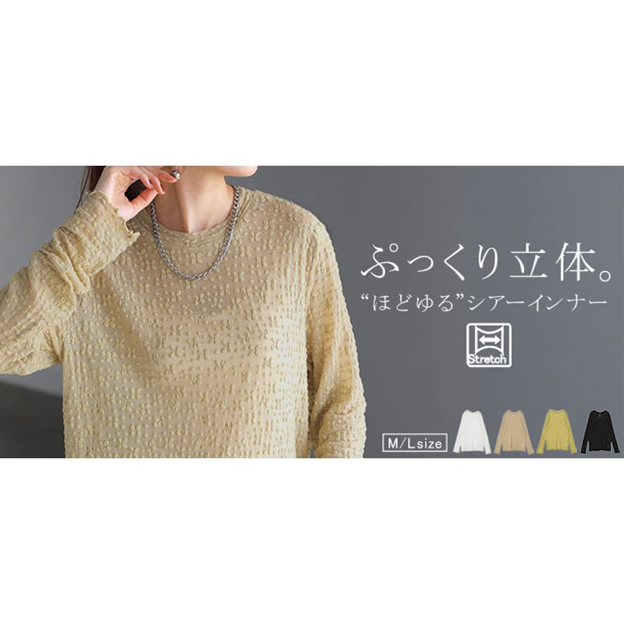 シアーインナー シアーブラウス シースルートップス シースルーインナー シースルーブラウス メッシュ メッシュトップス メッシュインナー メッシュブラウス チュール チュールトップス チュールインナー チュールブラウス レイヤードトップス レイヤードインナー レイヤードブラウス シック モード シースルー 透け 透け感 肌隠し しわ隠し 首元 肌着 下着 ファンデーション インナー ファンデーションインナー ブラウス レース レーストップス レースインナー透かし編み 伸縮性 伸縮 ストレッチ 長い 長め 薄手 薄目 薄い 薄め ロンT Tシャツ カットソー ロング ティーシャツ 長袖T 長袖Tシャツ 長袖カットソー ロンティ ロンティー ロングTシャツ ロングティーシャツ ロングティシャツ ロングトップス ロングT ロングカットソー ティーシャツロング ティシャツ ティーシャツ 袖あり Uネック U字ネック クルーネック 丸首 ボートネック 立体 ぽこぽこ ポコポコ 凹凸 レイヤードT レイヤードTシャツ レイヤードトップス ベーシックインナー レイヤードブラウス レイヤードシャツ 結婚式 二次会 お呼ばれ フォーマル ドレッシー パーティー パーティ 日焼け対策 紫外線対策 冷房対策 ラクチン らくちん 楽ちん 楽 動きやすい ゆったり ゆる ゆったりサイズ ゆるカジ ゆるい ゆるファッション フリーサイズ フリー S M L LL 2L XL 3L XXL LLL ホワイト 白 白色 ブラック 黒 黒色 ベージュ ピスタチオ 黄緑 イエロー 黄 黄色 レイヤード 重ね着 重ね レイヤードコーデ 体型カバー 二の腕カバー 二の腕隠し 着痩せ 着回し お尻が隠れる 大きい 大きめ 大き目 プラスサイズ 大きいサイズ ビッグ ビック big ビックシルエット ビッグシルエット ビックサイズ ビッグサイズ オーバーサイズ オーバー カジュアル ナチュラル 大人カジュアル レディースファッション ベーシック オフィス オフィスカジュアル テレワーク リモートワーク リモート オンライン飲み会 韓国ファッション 韓国風 韓国 ストリート おうち時間 お家時間 デート お出かけ フェス リゾート ビーチ 海 旅行 飛行機 パーティー パーティ 着回し 母の日 プレゼント ギフト 贈り物 クリスマス シンプル 大人 オトナ 大人カジュアル オフィスカジュアル オフィス レディースファッション 女性 綺麗 綺麗目 きれい キレイ キレイめ キレイメ きれいめ 高見え 上質 上品 ゆる ゆったり 旬 トレンド 20代 30代 40代 50代 60代 おしゃれ お洒落 オシャレ 可愛い かわいい カワイイ カッコいい 格好良い カッコイイ 春 夏 秋 冬 春夏 秋冬 HUG.U HUGU ハグユー はぐゆー