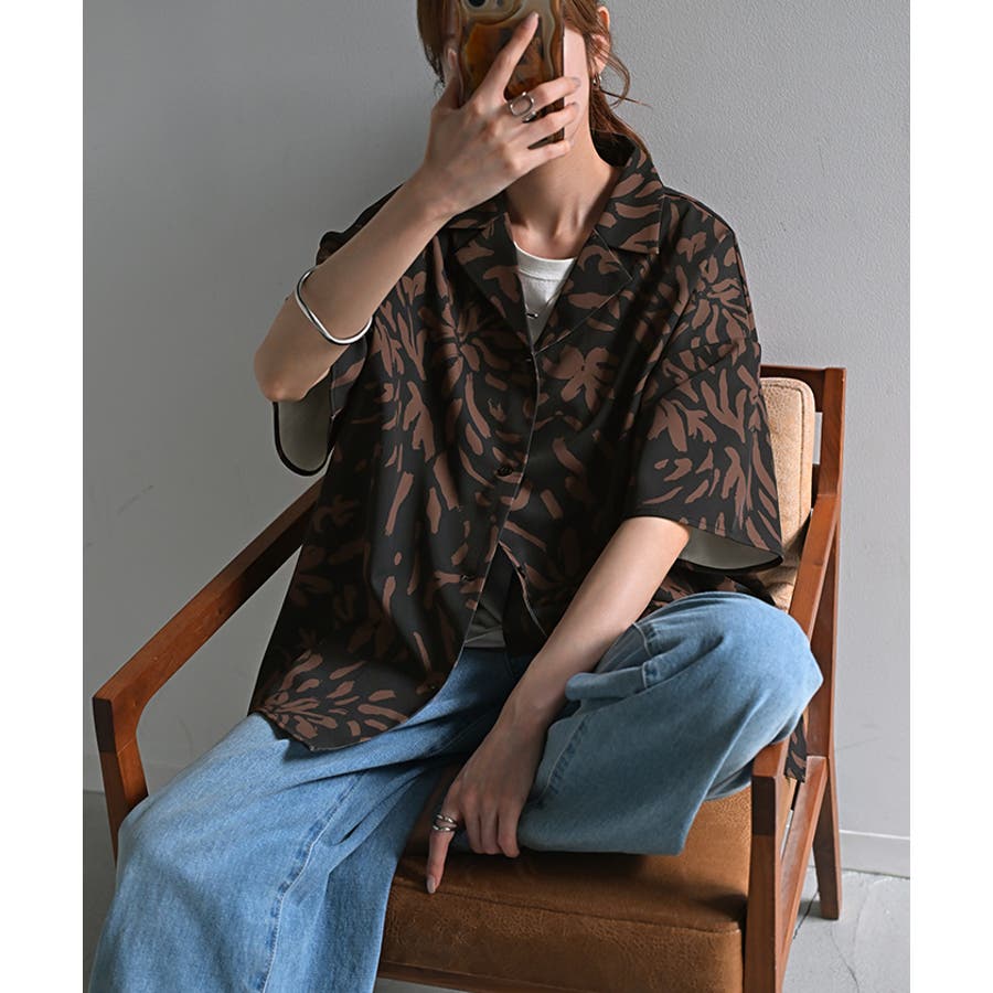 大胆にスタイリッシュに総柄をプリントした半袖シャツです。