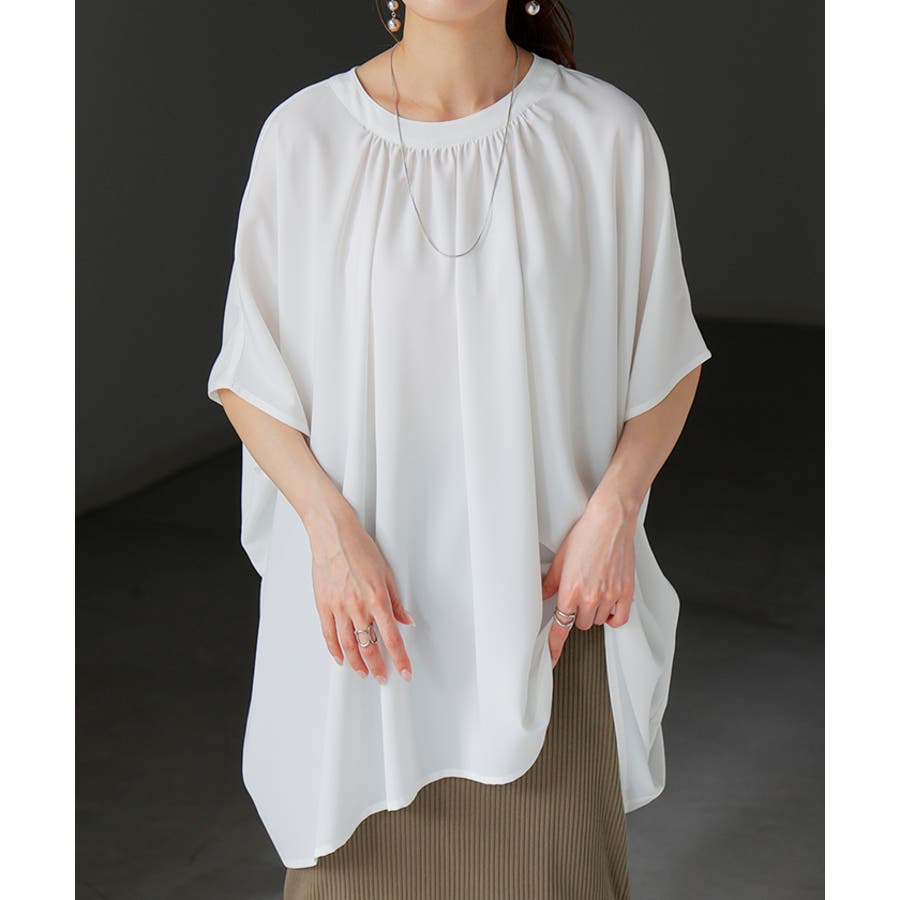 上品な抜け感が大人っぽく体型カバーにもなるプルオーバーブラウスです。