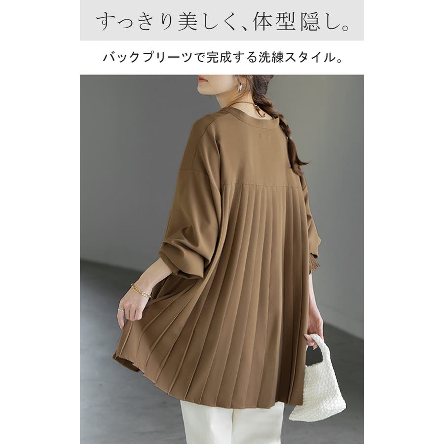 バックプリーツでリラックス感がありつつ上品な雰囲気あるブラウスです。