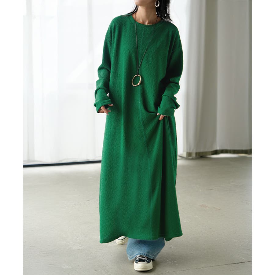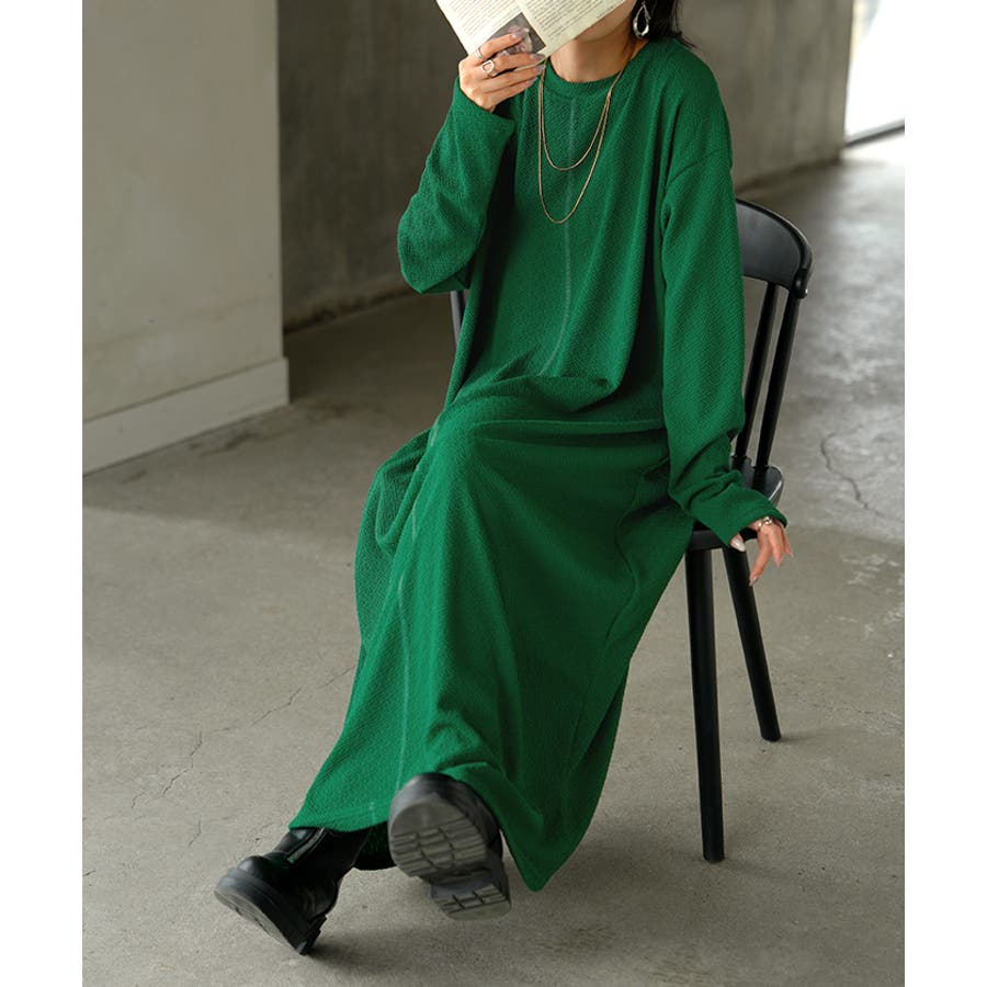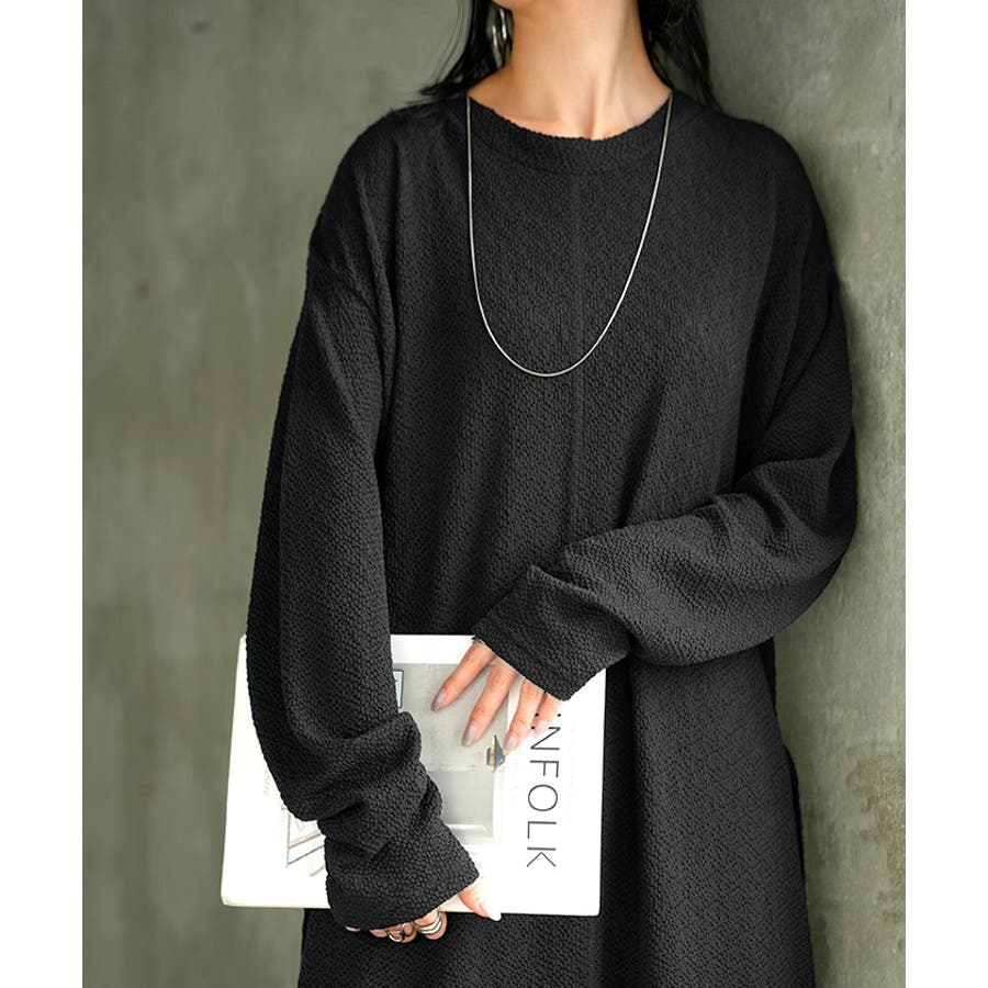 凹凸した表面感が特徴的なカットソーワンピースです。