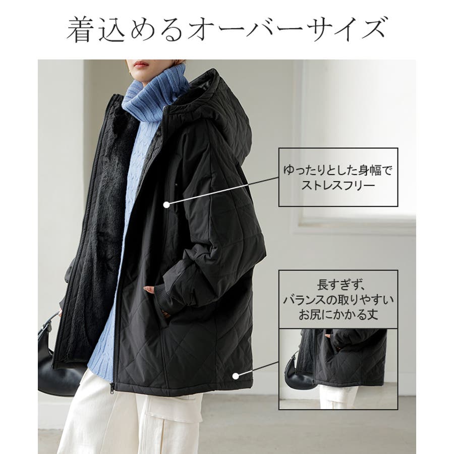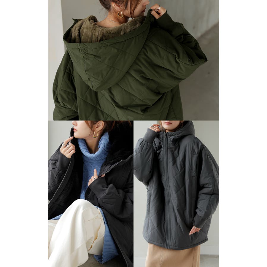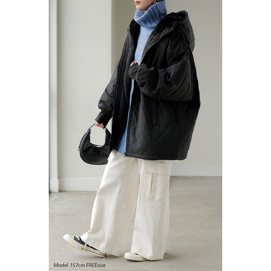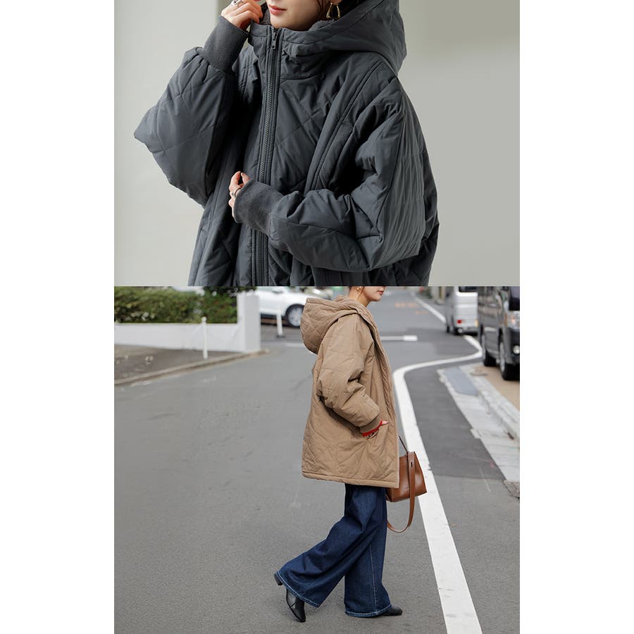 中綿入りでとっても暖かくビッグシルエットなのに軽い着心地も魅力◎。