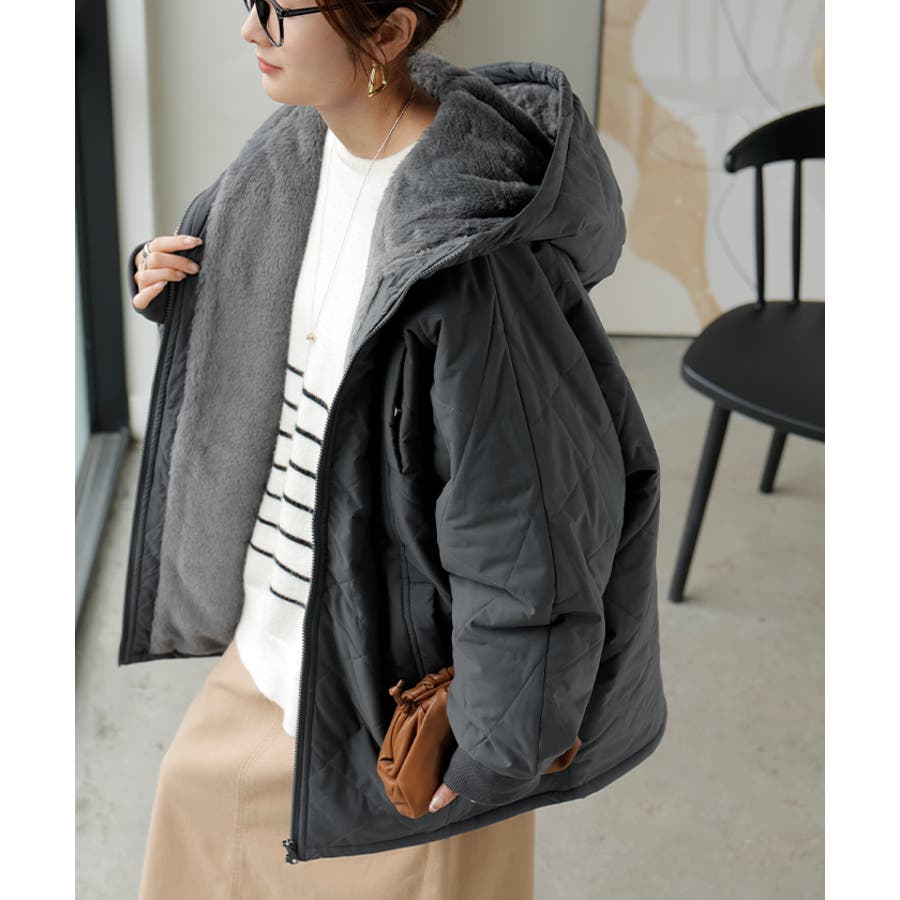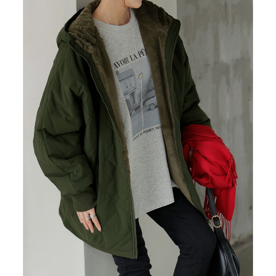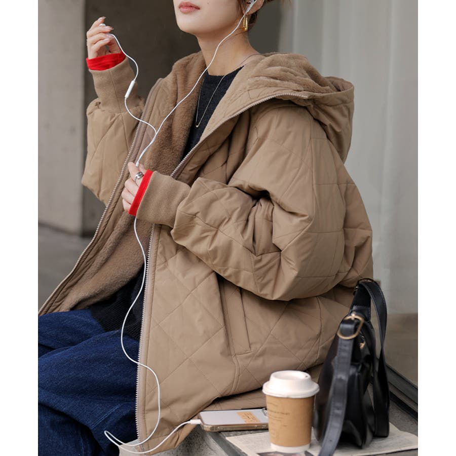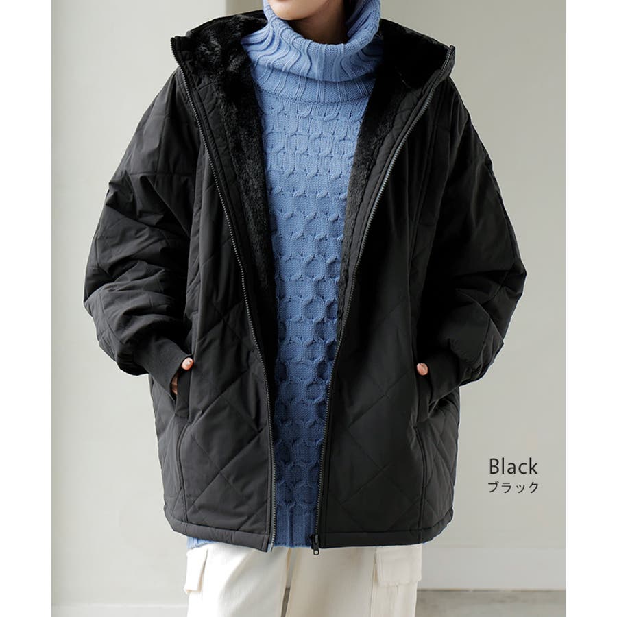 中綿入りでとっても暖かくビッグシルエットなのに軽い着心地も魅力◎。