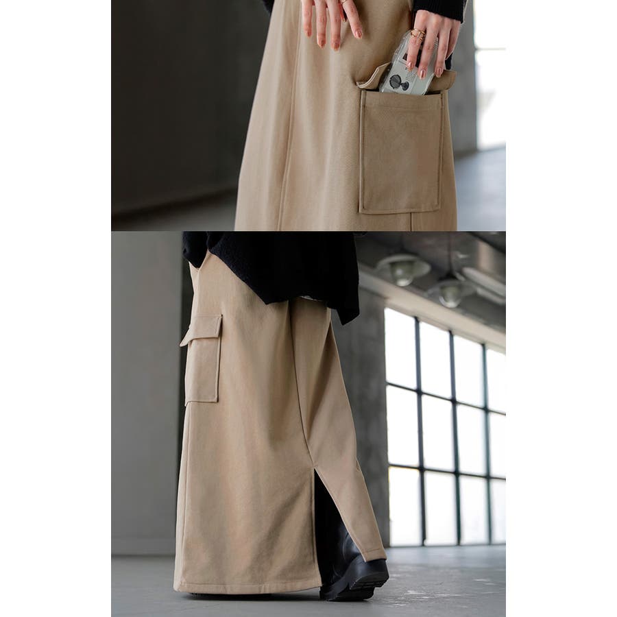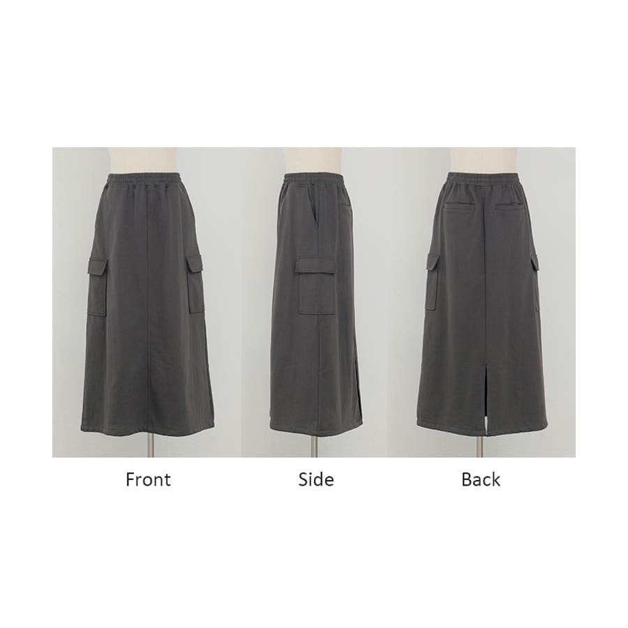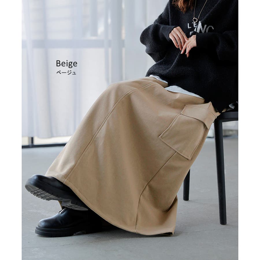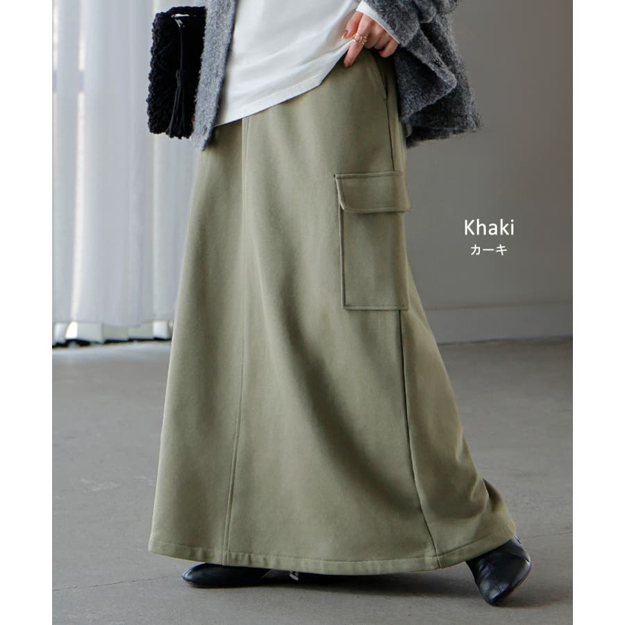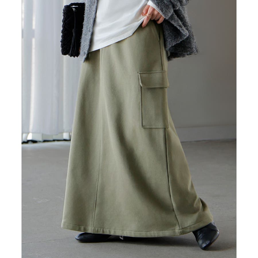 カーゴポケットが特徴的なミリタリー風の裏毛スカートです。
