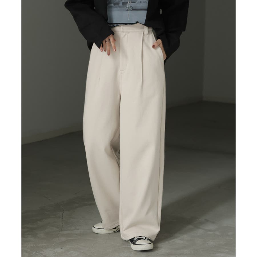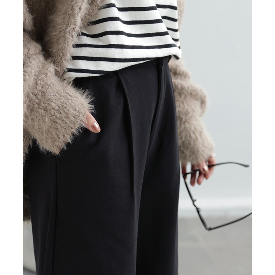 生地の落ち感とタック仕様で程よく広がるワイドシルエットが特徴◎。