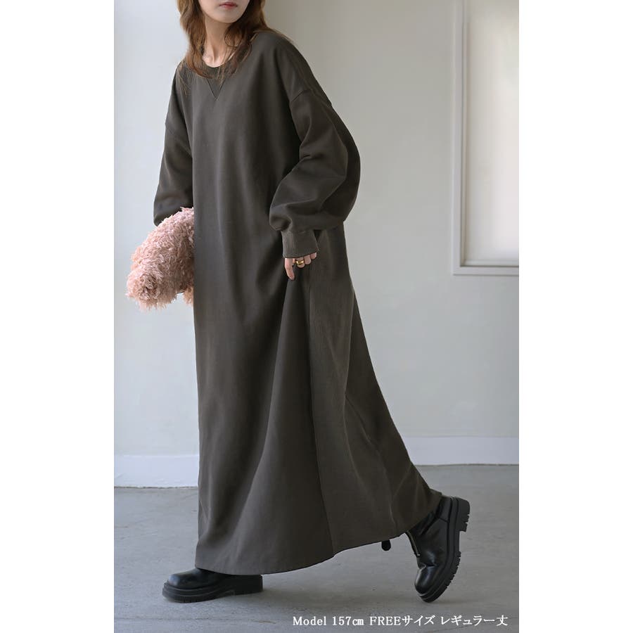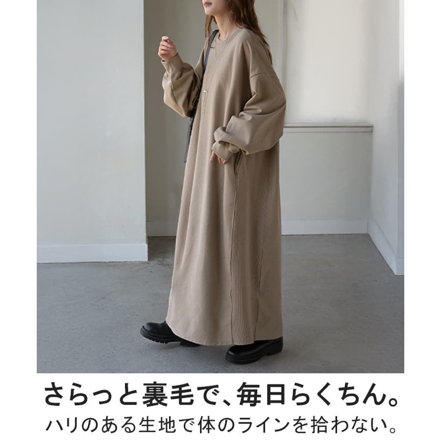 自然に綺麗なラインが作れるストレートラインの裏毛ワンピースです。