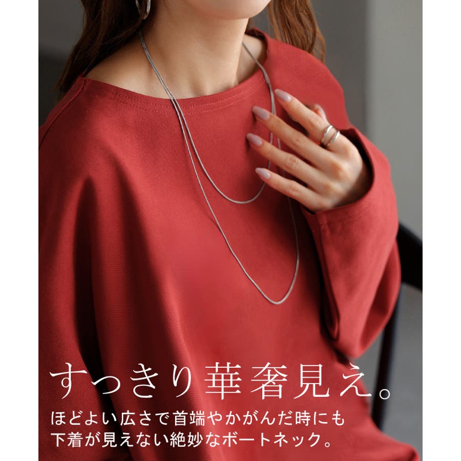 デコルテラインを綺麗に魅せてくれるボートネックデザインが◎。