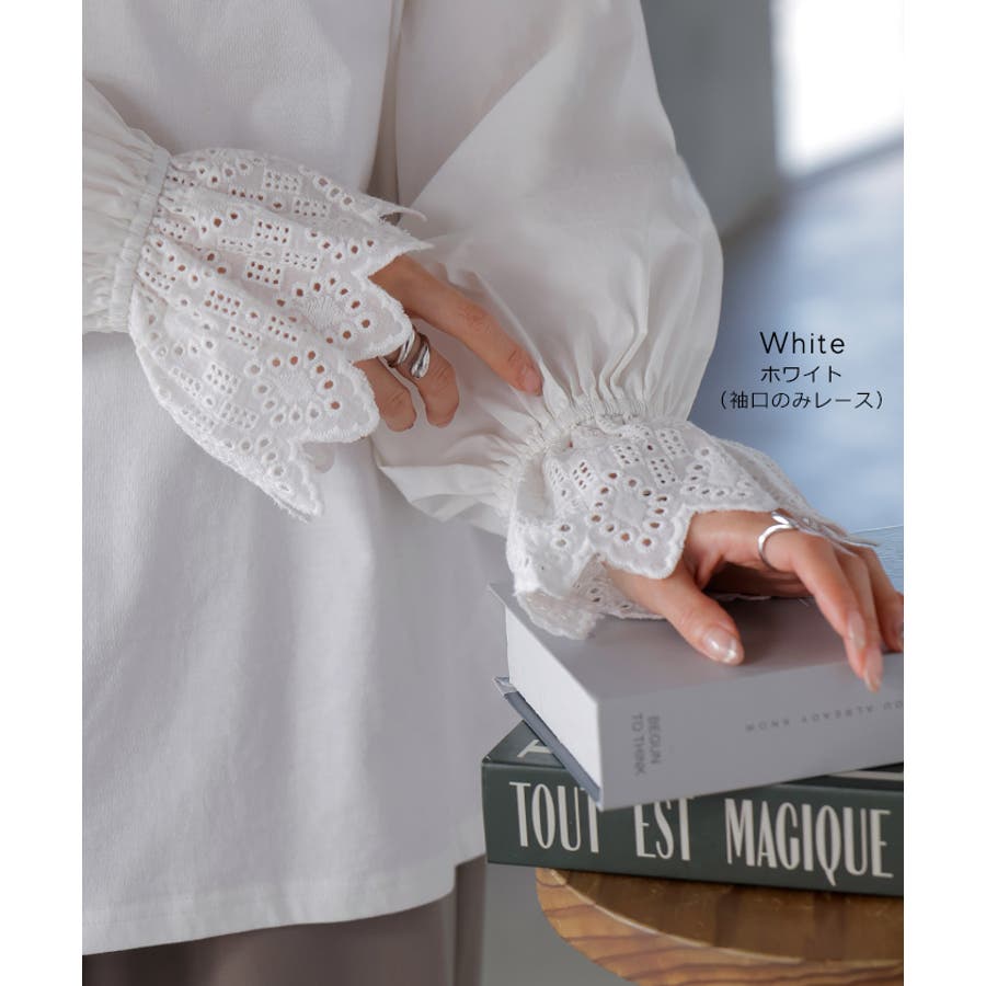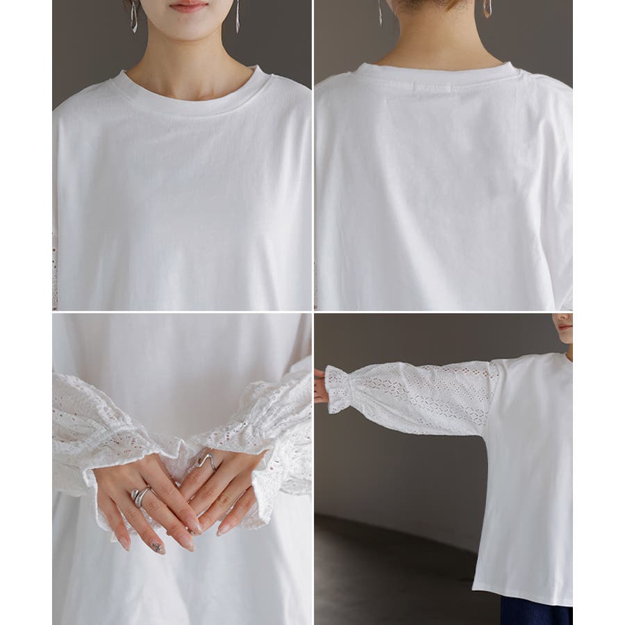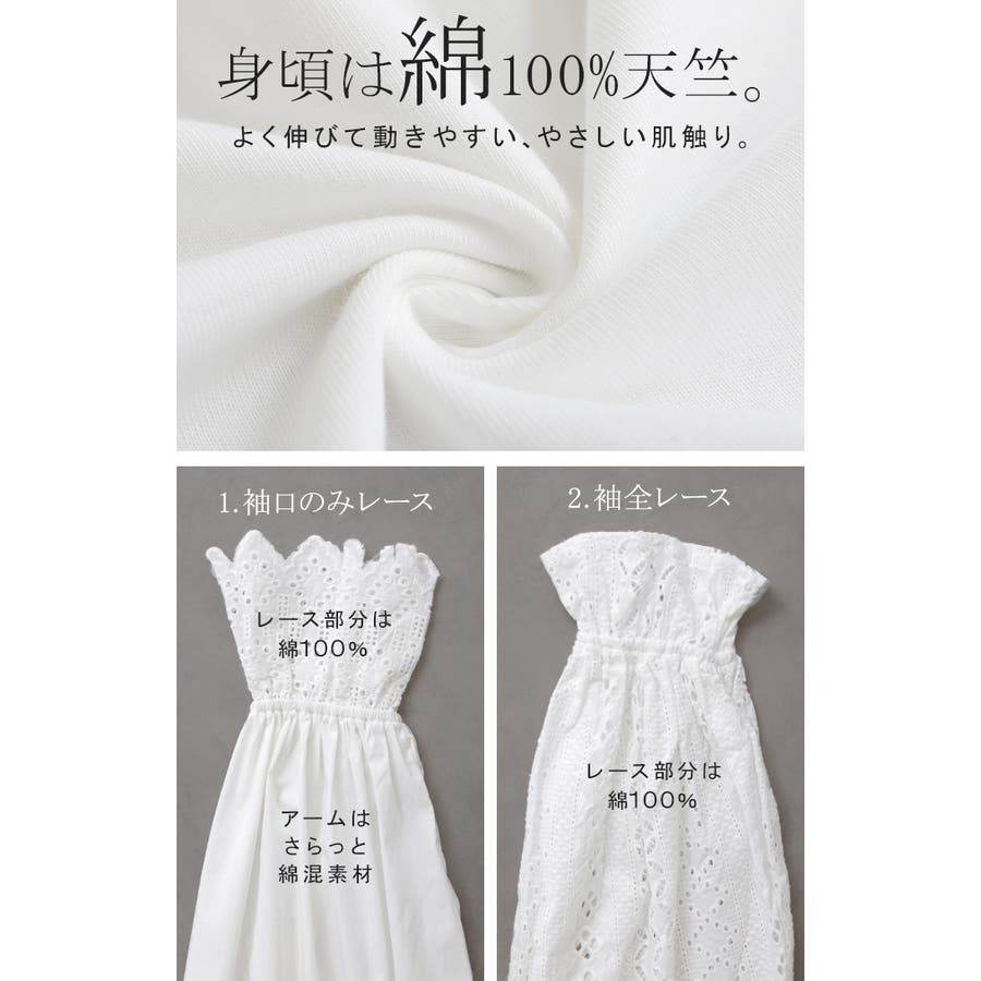 | 素材 | 袖口レース 本体:綿100% 別布:綿70% ナイロン27% ポリウレタン3% レース部分:綿100% 袖全レース 本体:綿100% レース部分:綿100% |