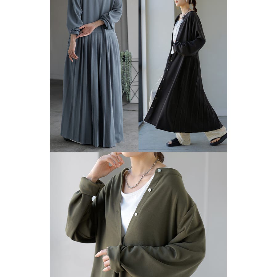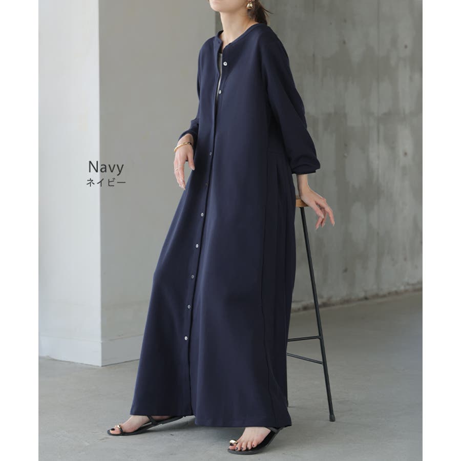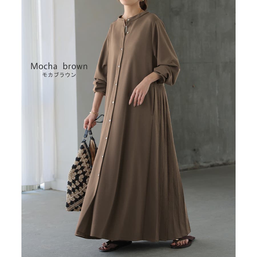 ワンピース プリーツ ノーカラ―
