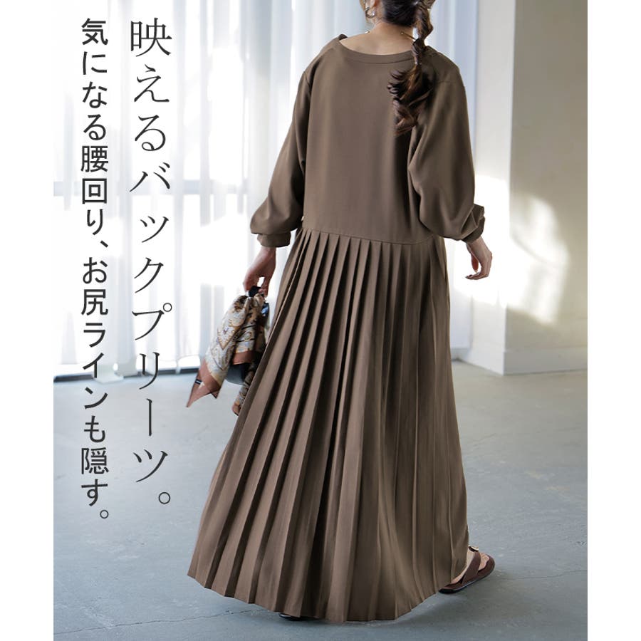 バックプリーツで全体のバランスが良くストンとしたシルエットで華奢見え効果も◎。