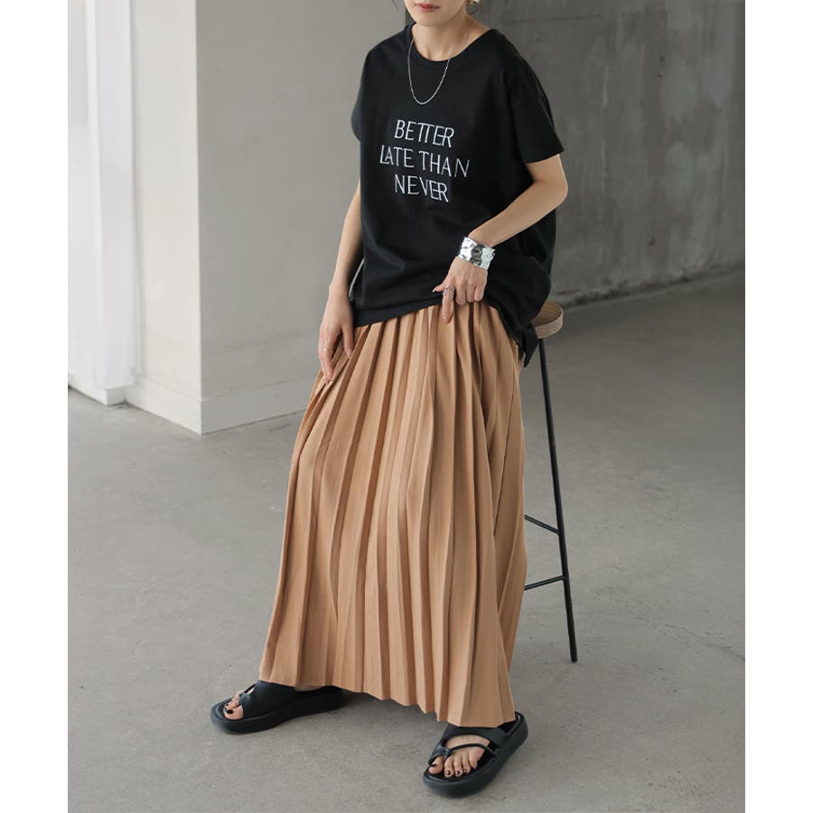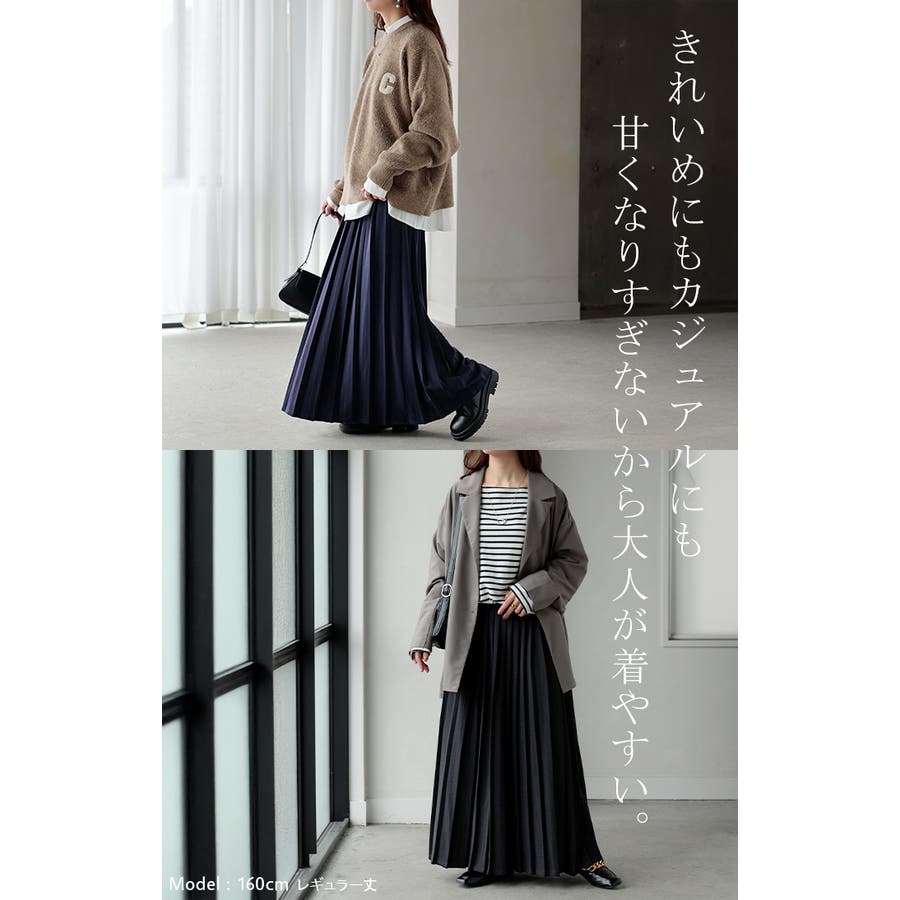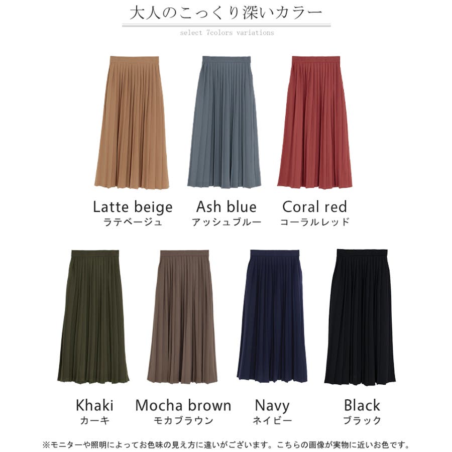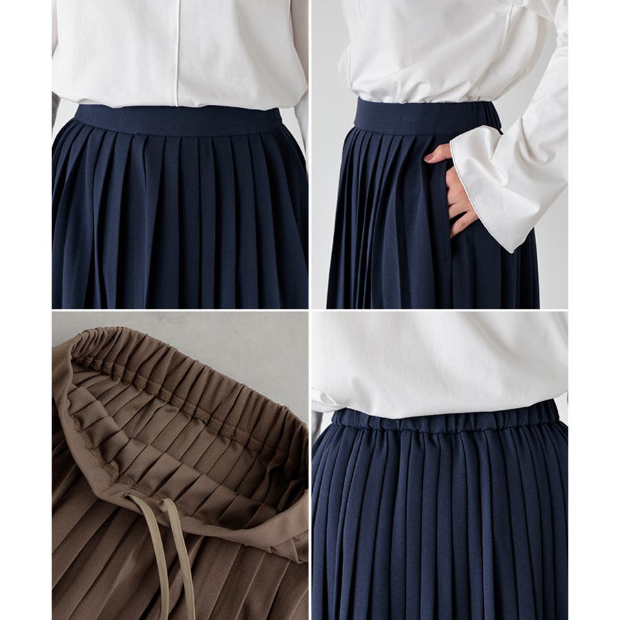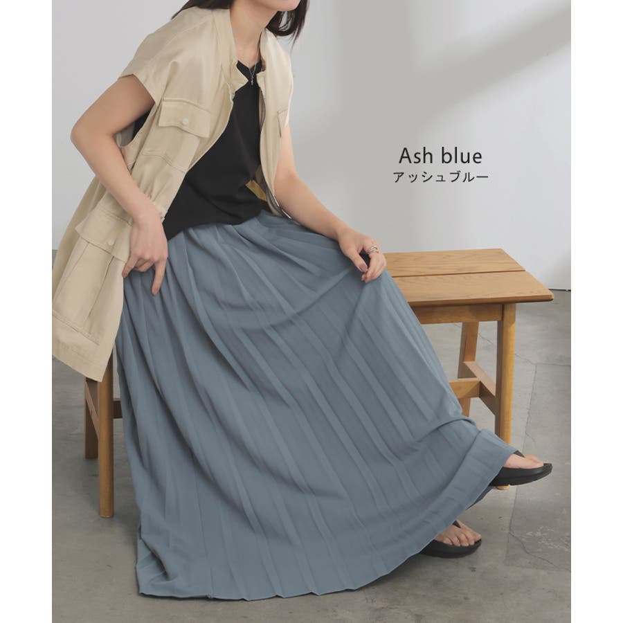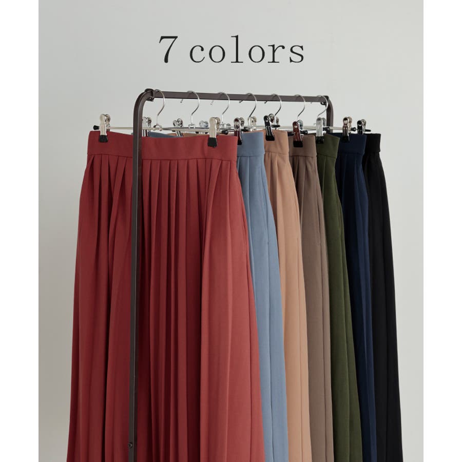 広がり過ぎないシルエットと立体感のある太めのプリーツ効果ですっきり体型カバー。