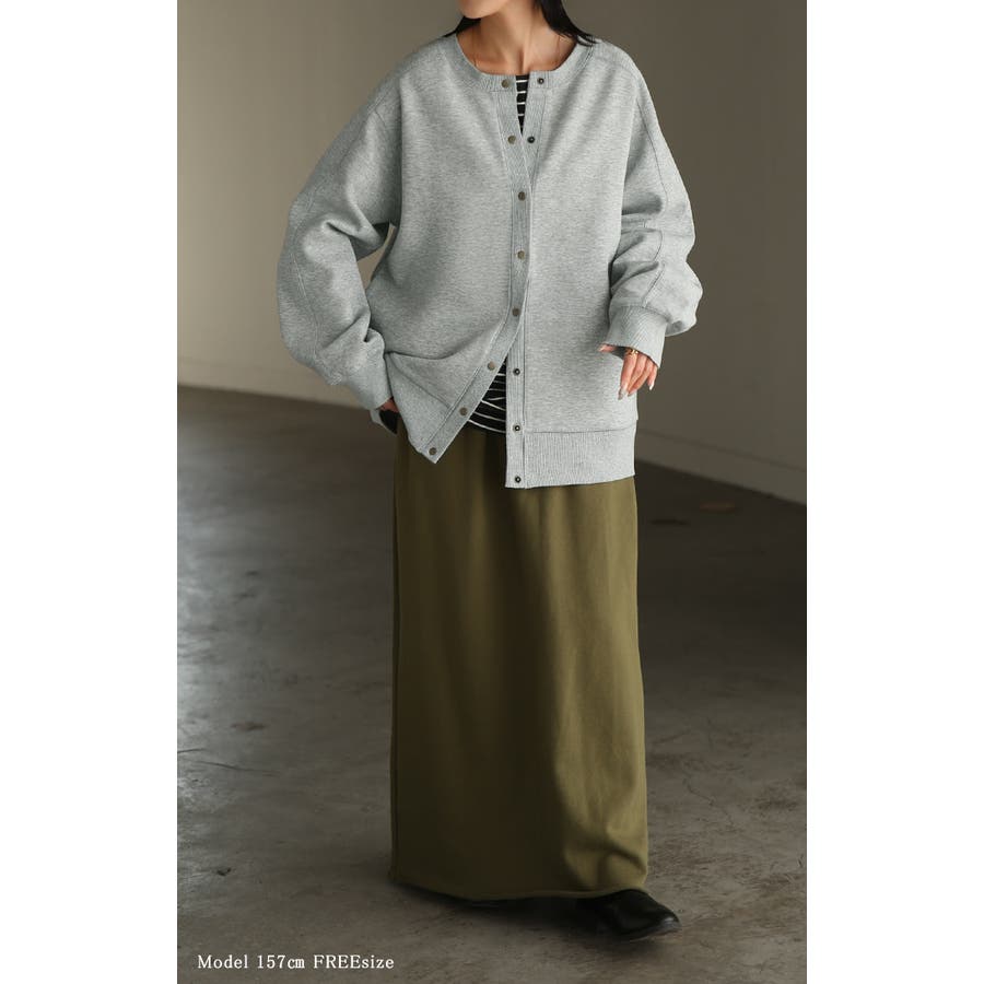 お尻が隠れるミドル丈のカーディガンでライトアウターとしても活躍します。
