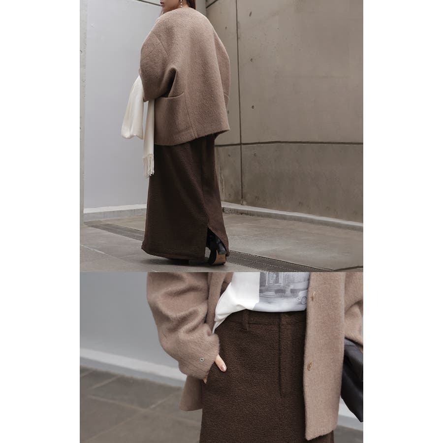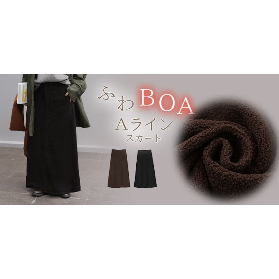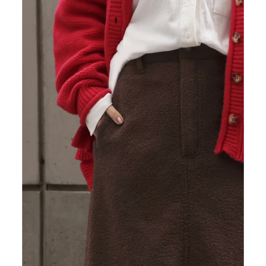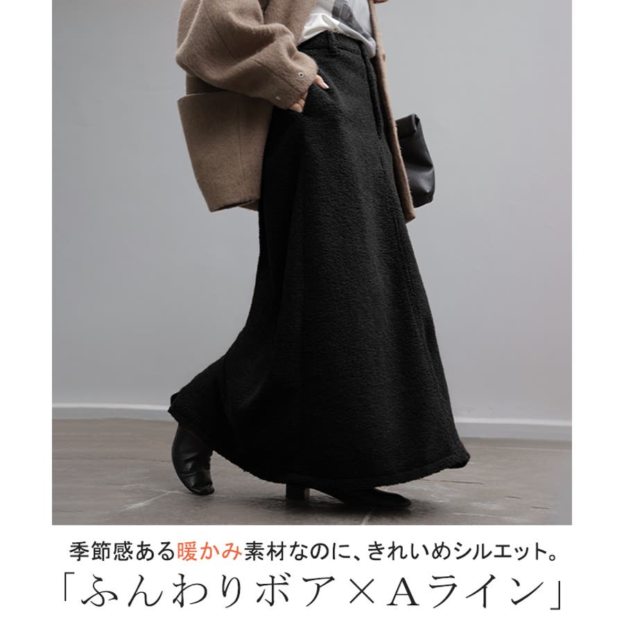 やわらかいボア素材が生み出す立体感が特徴的なAラインスカートです。