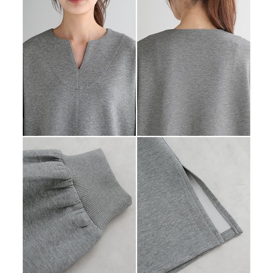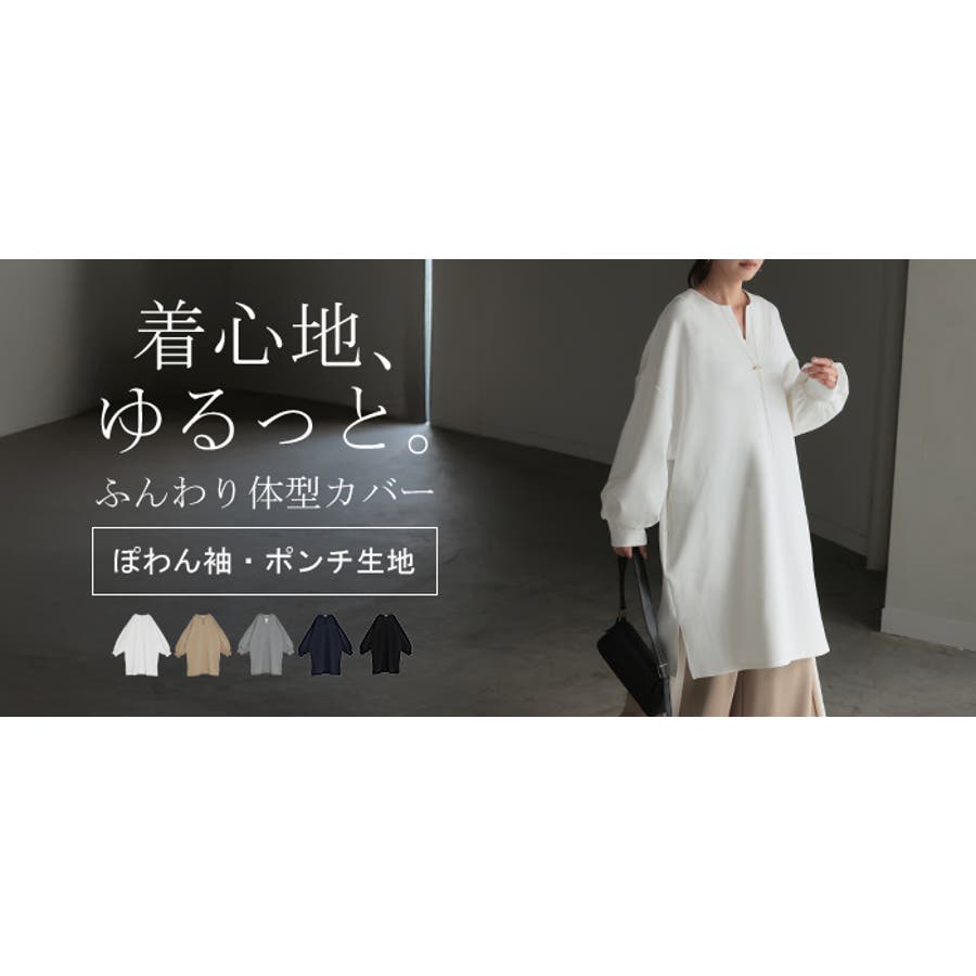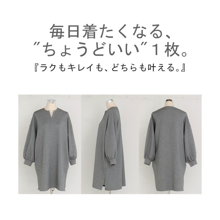 首元がスッキリしたデザインのポンチ素材のチュニックワンピースです。