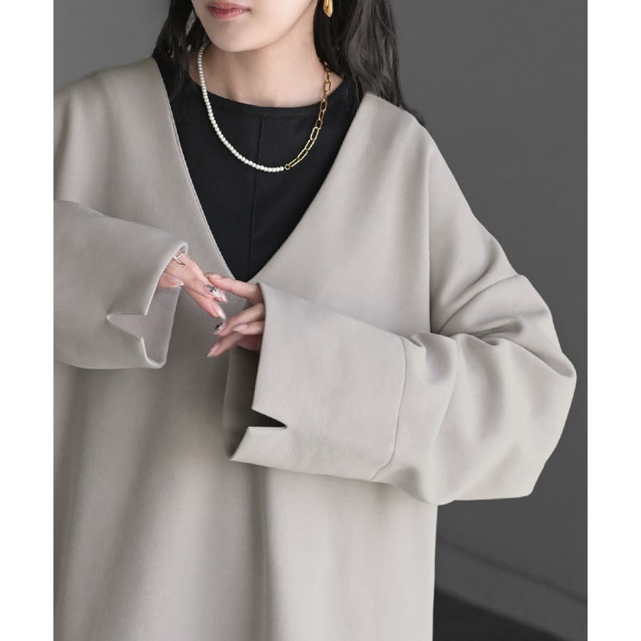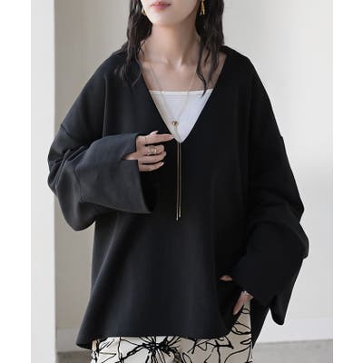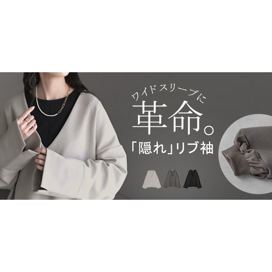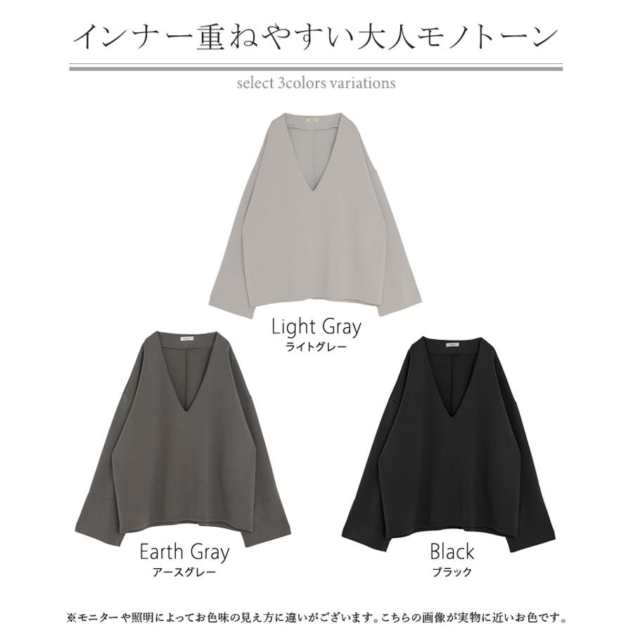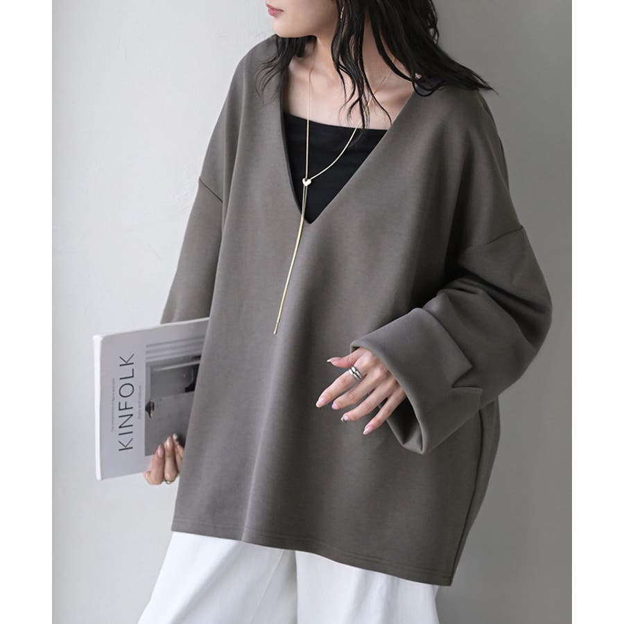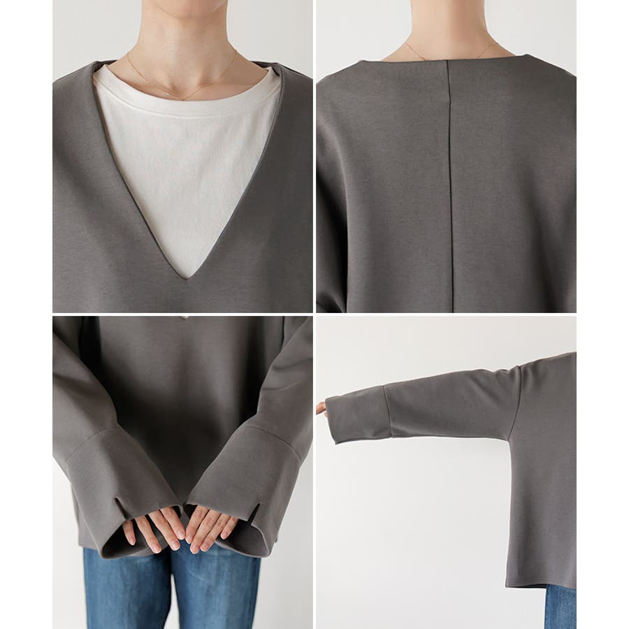 深めのVネックやワイドスリーブで抜け感が出てオシャレな印象に◎。