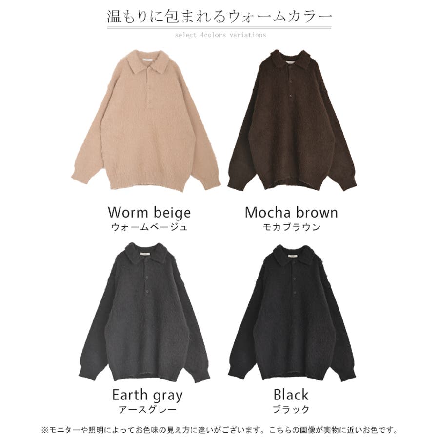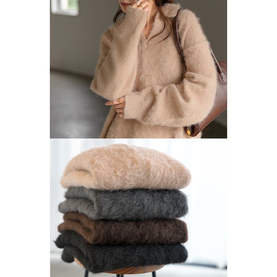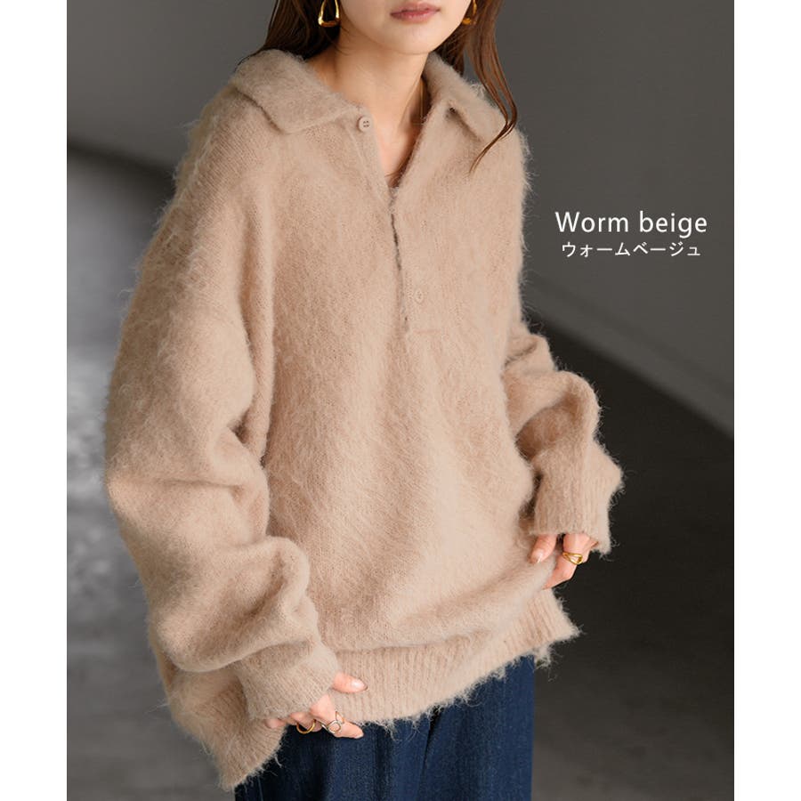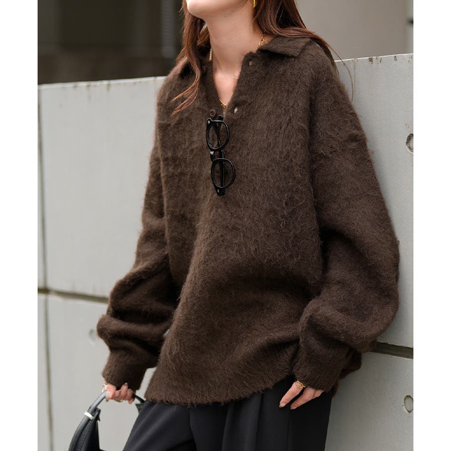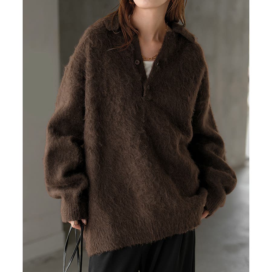 ふわふわ感が愛らしいポロシャツデザインのシャギーニットです。