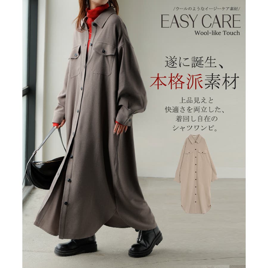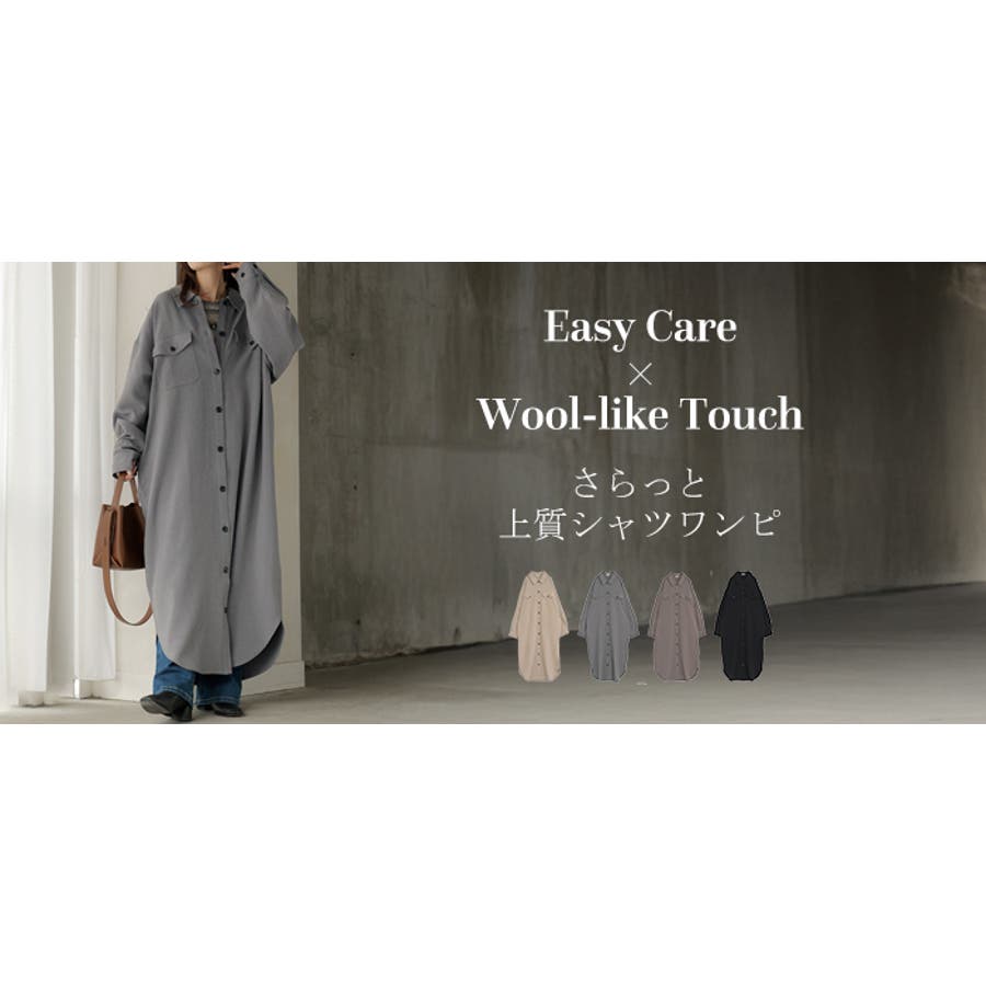 ウールライクなストレッチ生地を使用したシャツワンピースです。