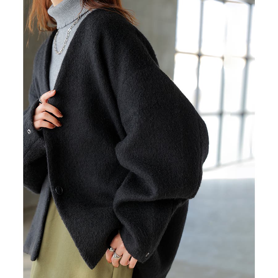 ノーカラーのゆったりのコートが欲しくて購入!こちらのブランドも何点か持ってます。オーバーサイズでお尻もかくれるし、軽くて着心地抜群です!なりより、オシャレで暖かい!今は全色完売!買って良かった!丈もちょうど良かったです!