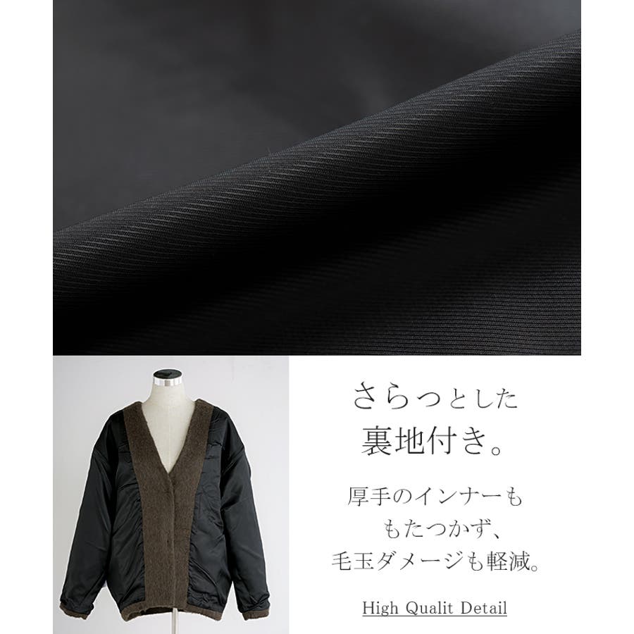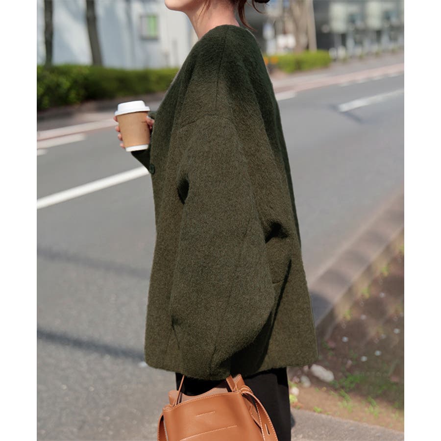 ふんわりとした毛足のあるシャギー素材がポイントのジャケットです。