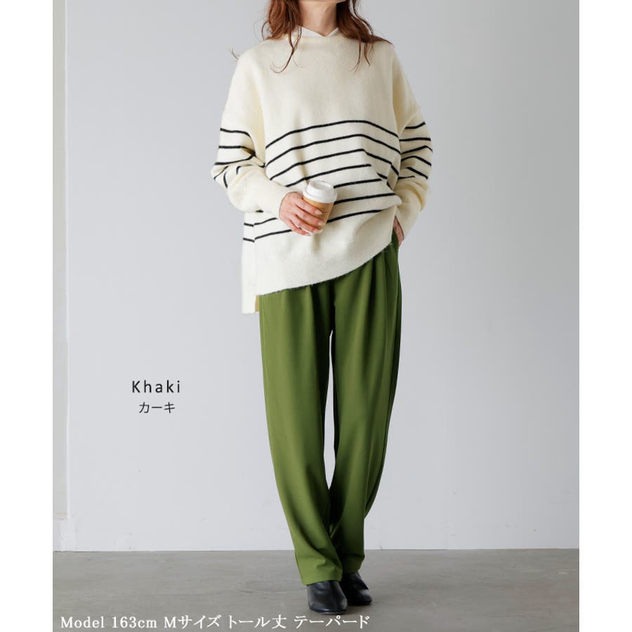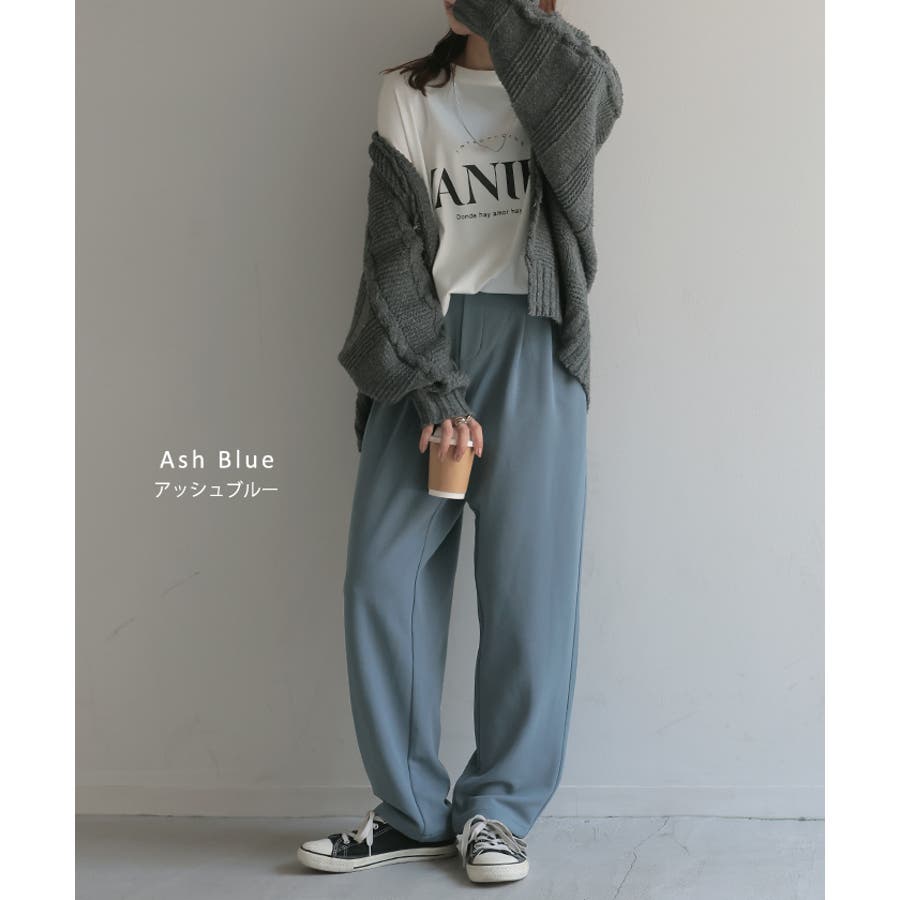 腰回りはゆったりとして足首にかけて細くなるシルエットは美脚が叶う一枚です。