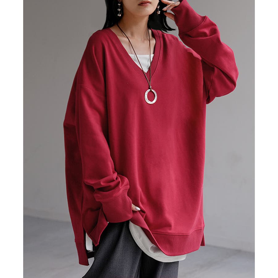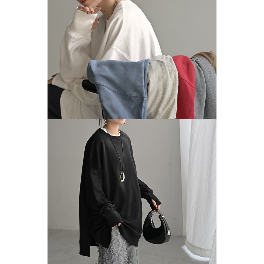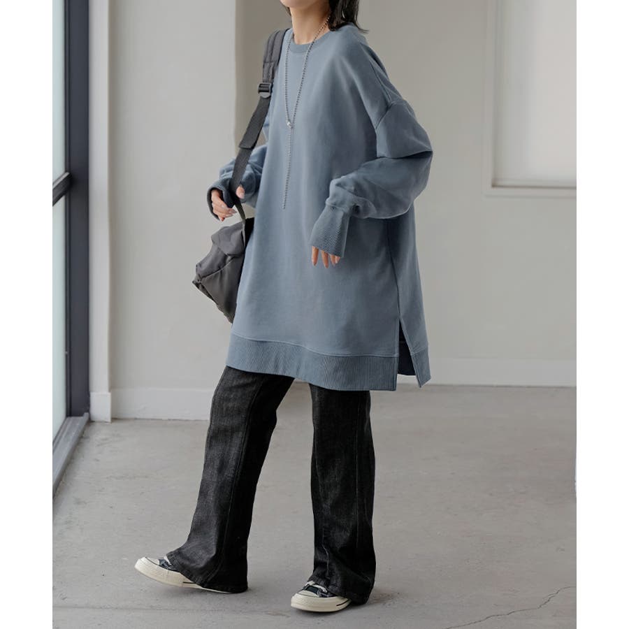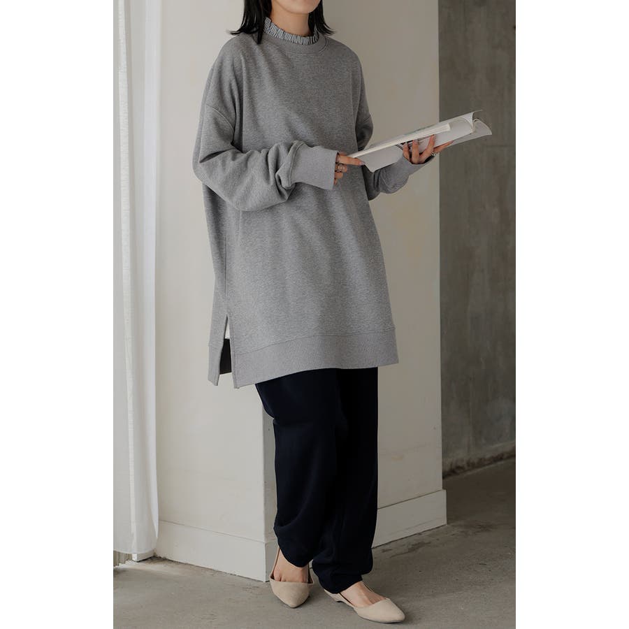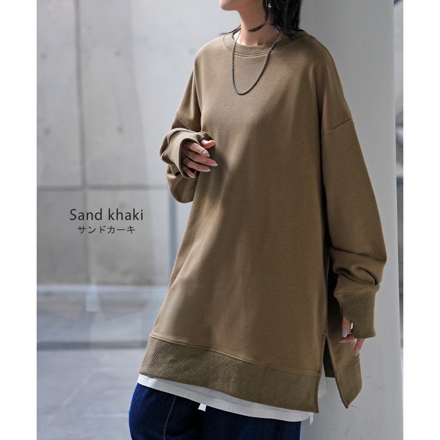 ルーズシルエットでゆったり着れるチュニック丈のスウェットトップスです。