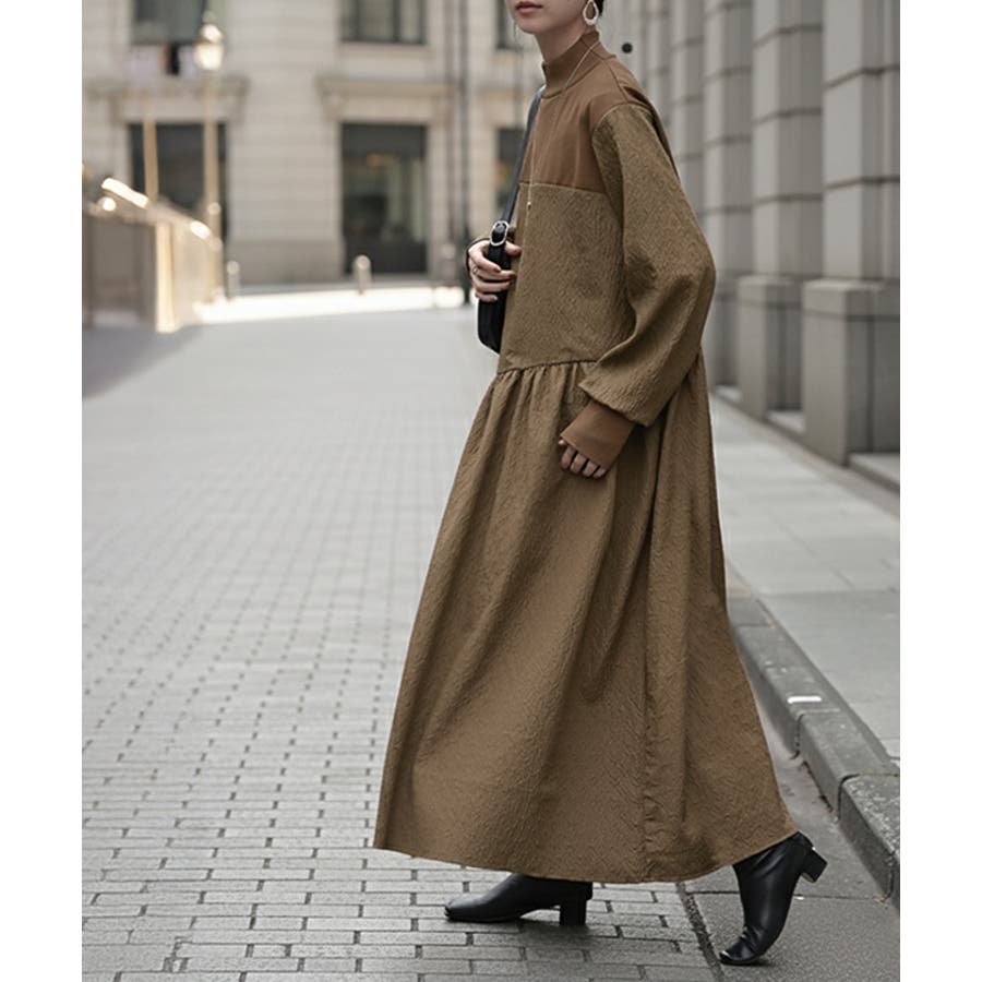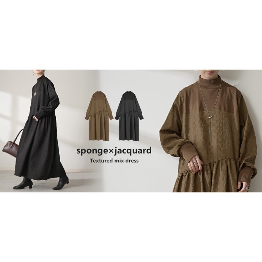 ワンピース 異素材 ジャガード