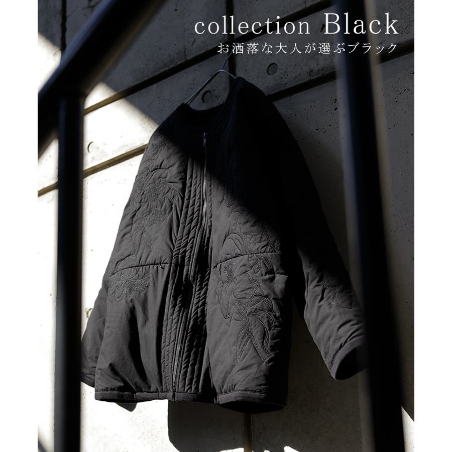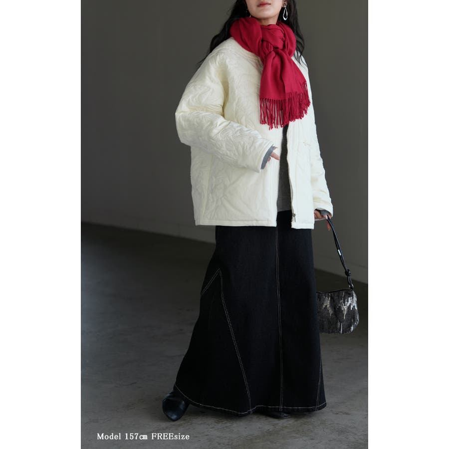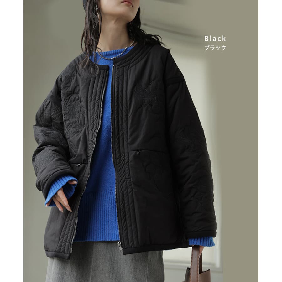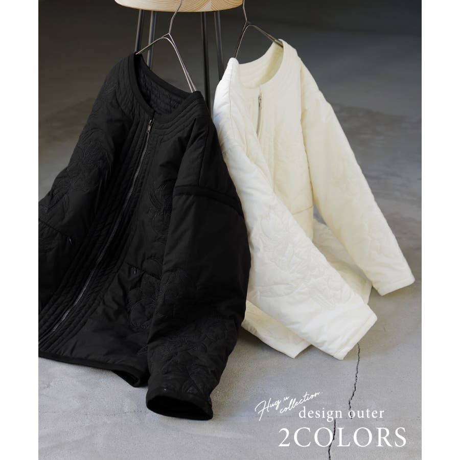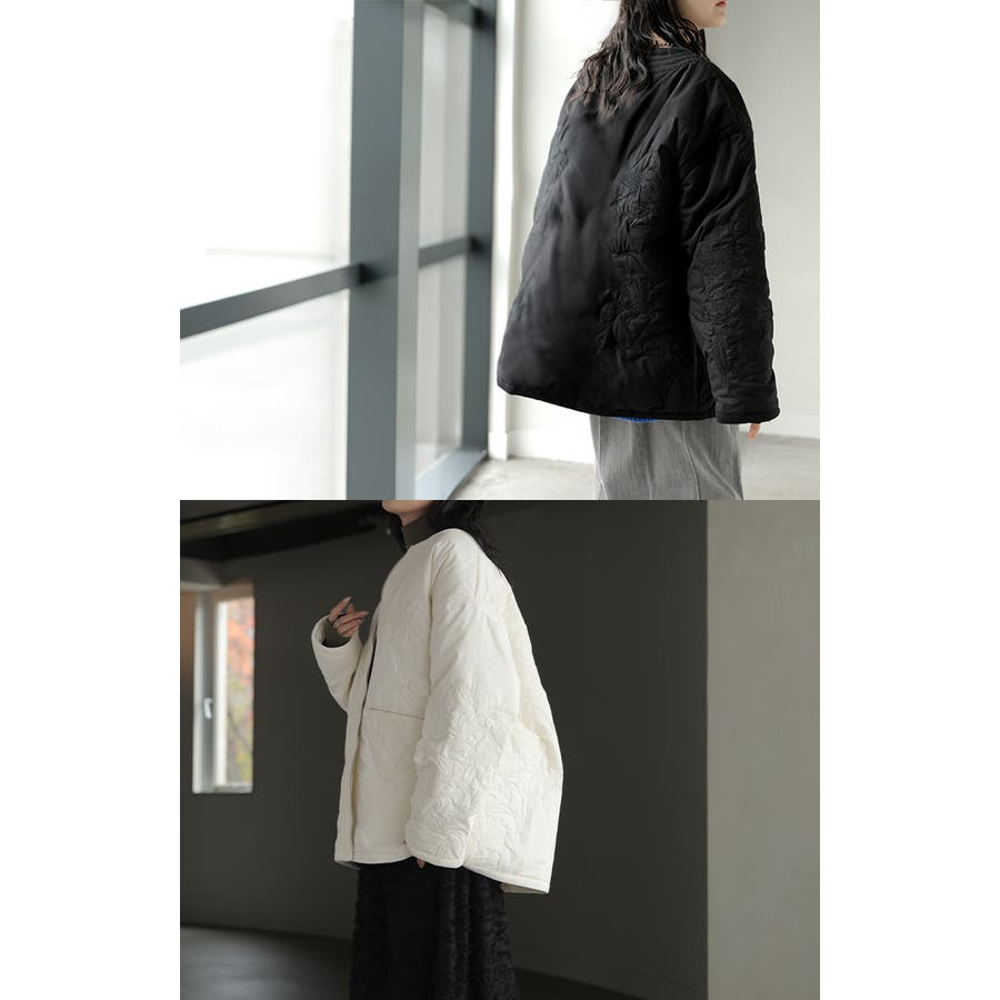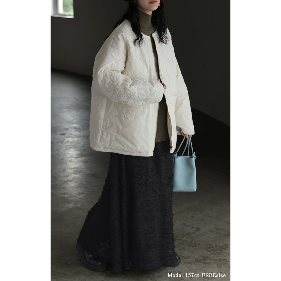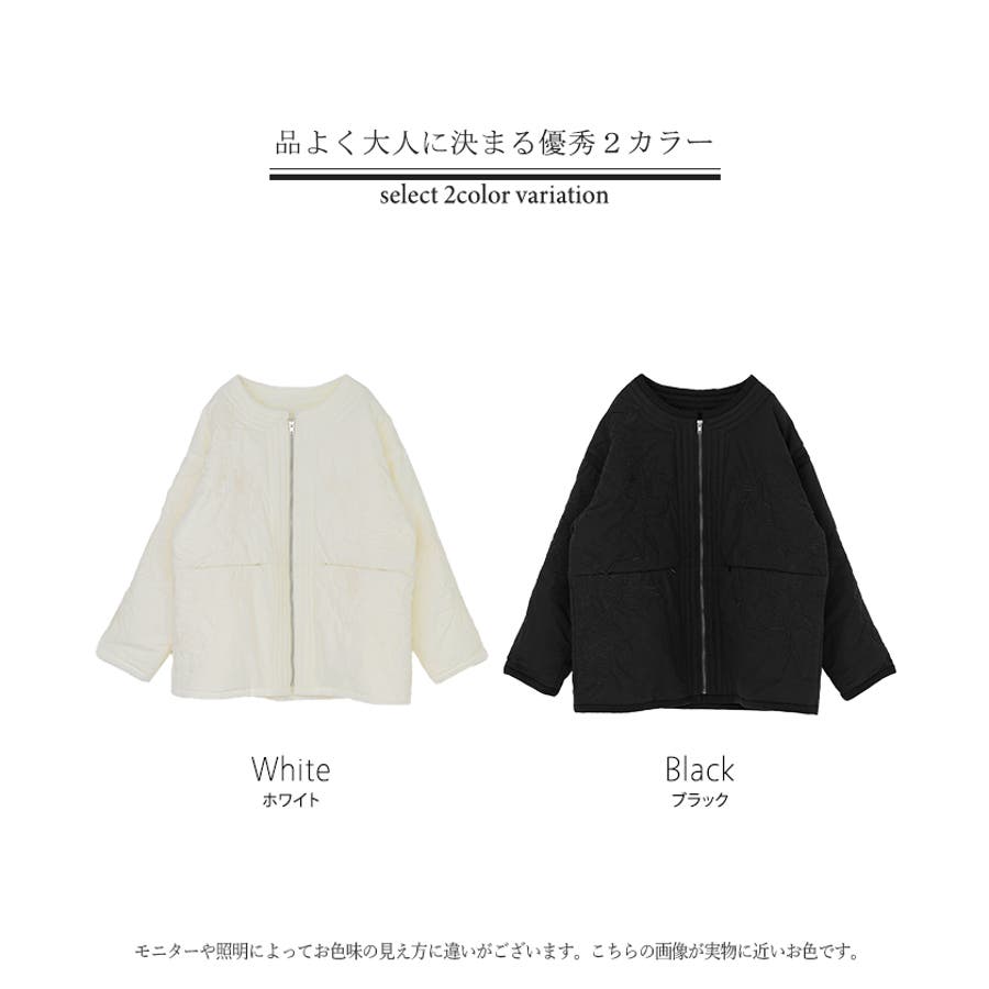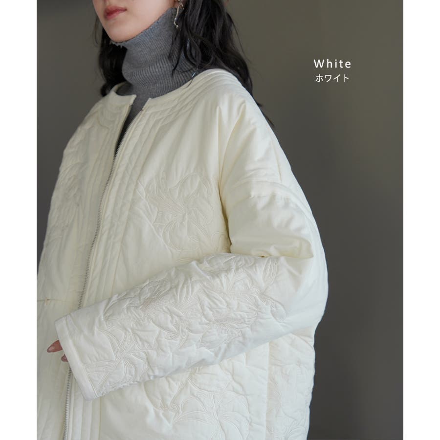立体感のある同色刺繍が印象的な女性らしいキルティングジャケットです。