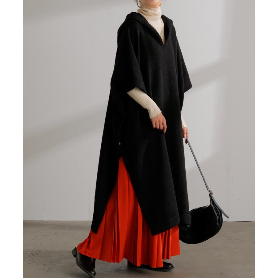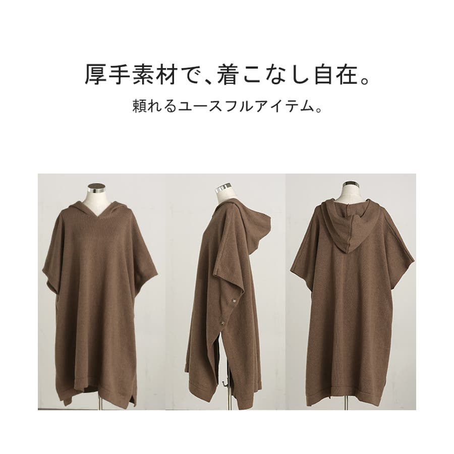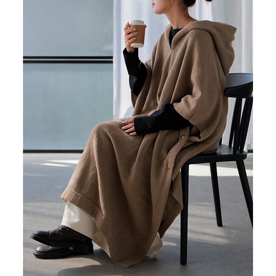 オーバーサイズがかわいいフード付きニットポンチョです。