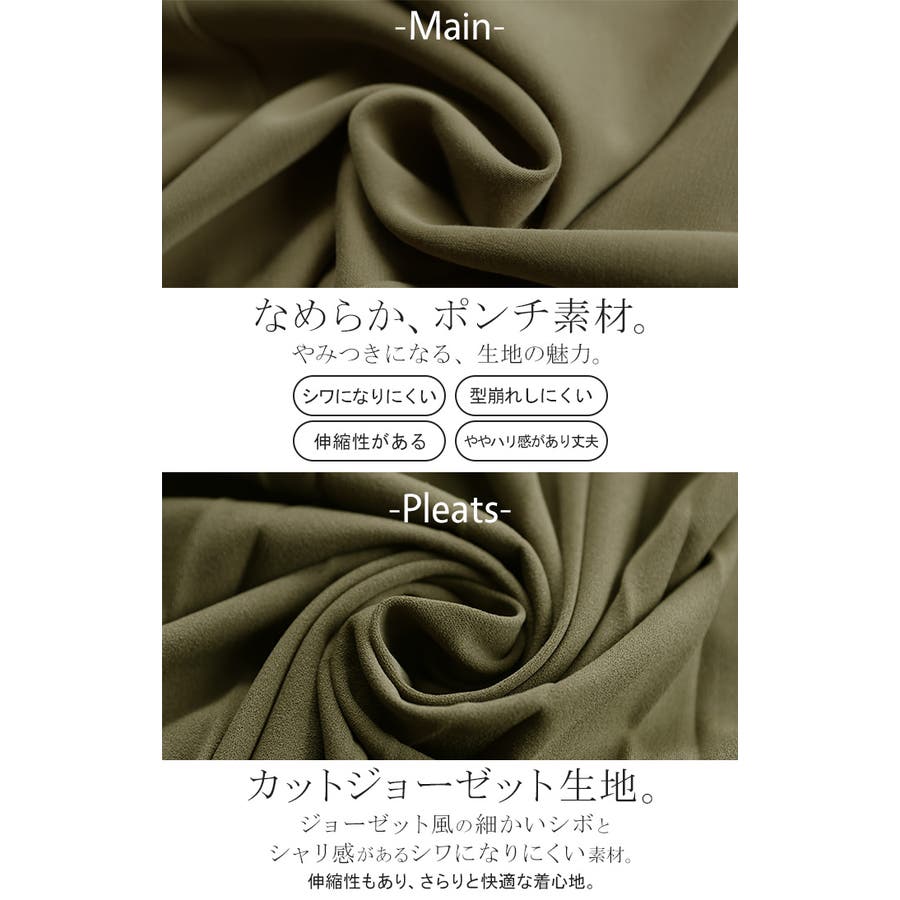 | 素材 | 本体:レーヨン50% ポリエステル44% ポリウレタン6% プリーツ部分:ポリエステル95% ポリウレタン5% |