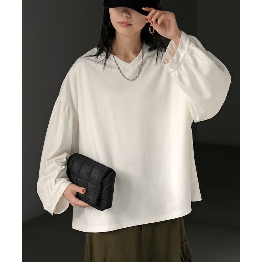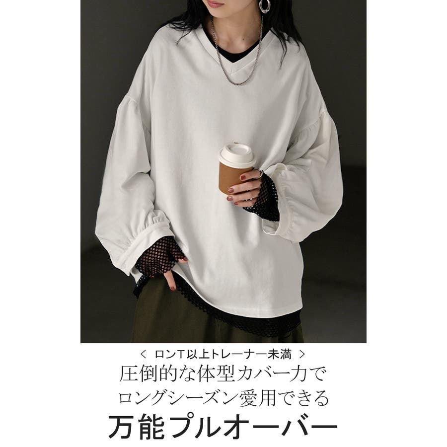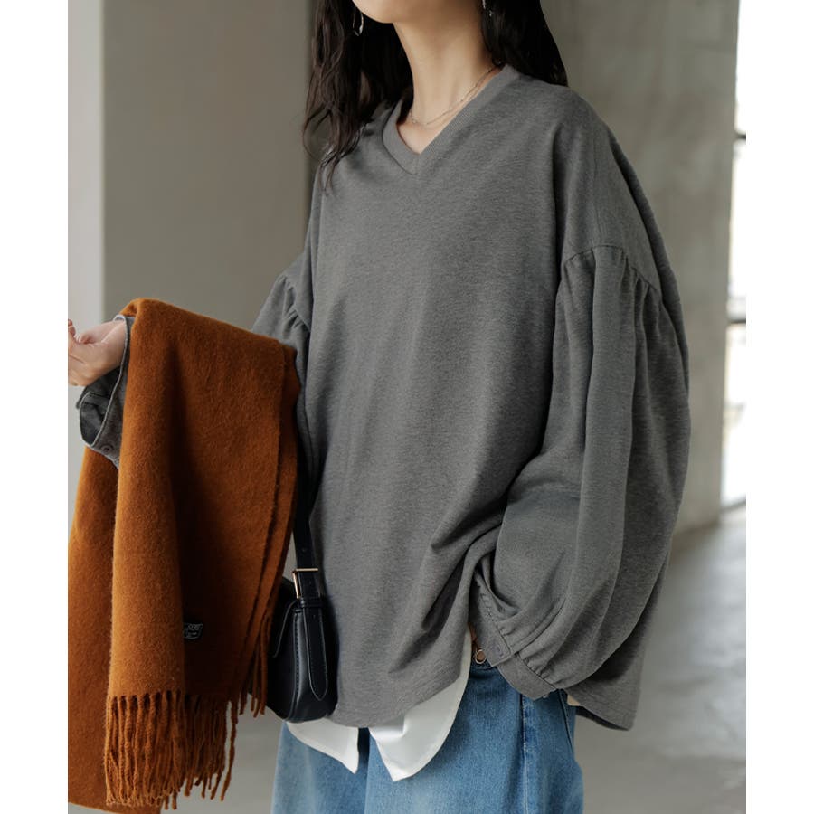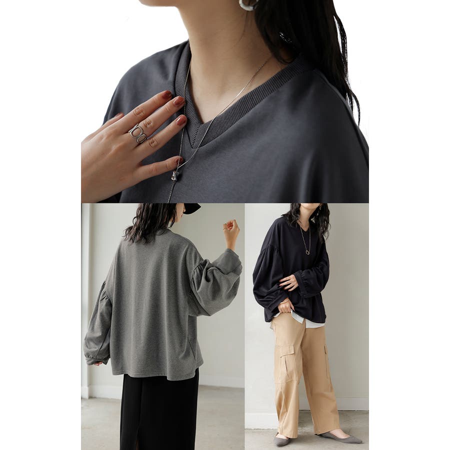 ふんわりパフスリーブで大人フェミニンな印象のVネックプルオーバーです。