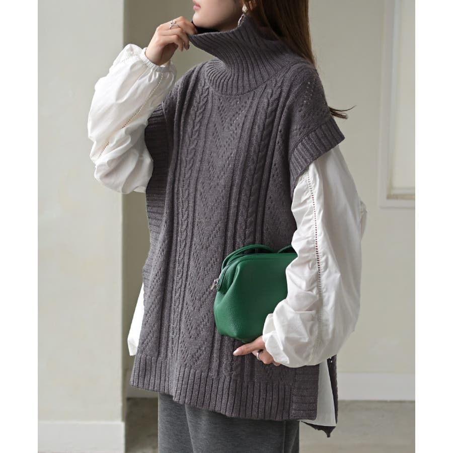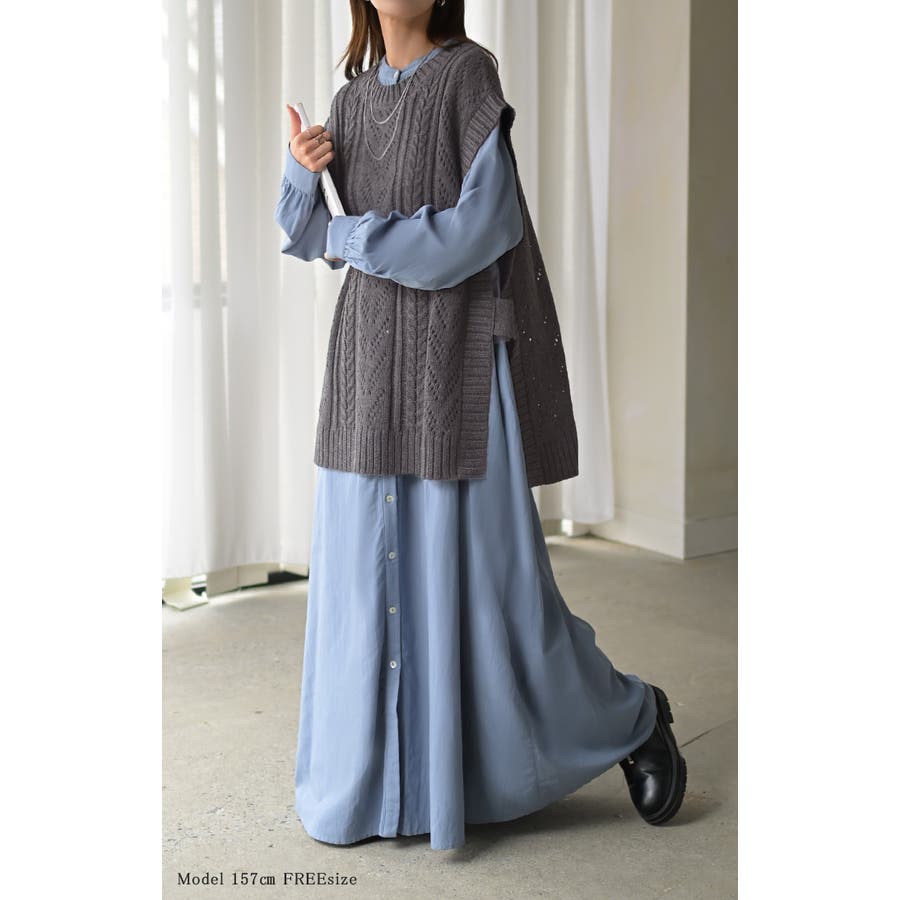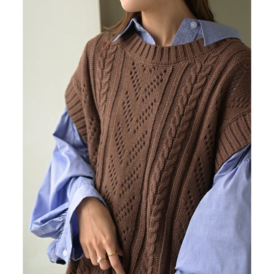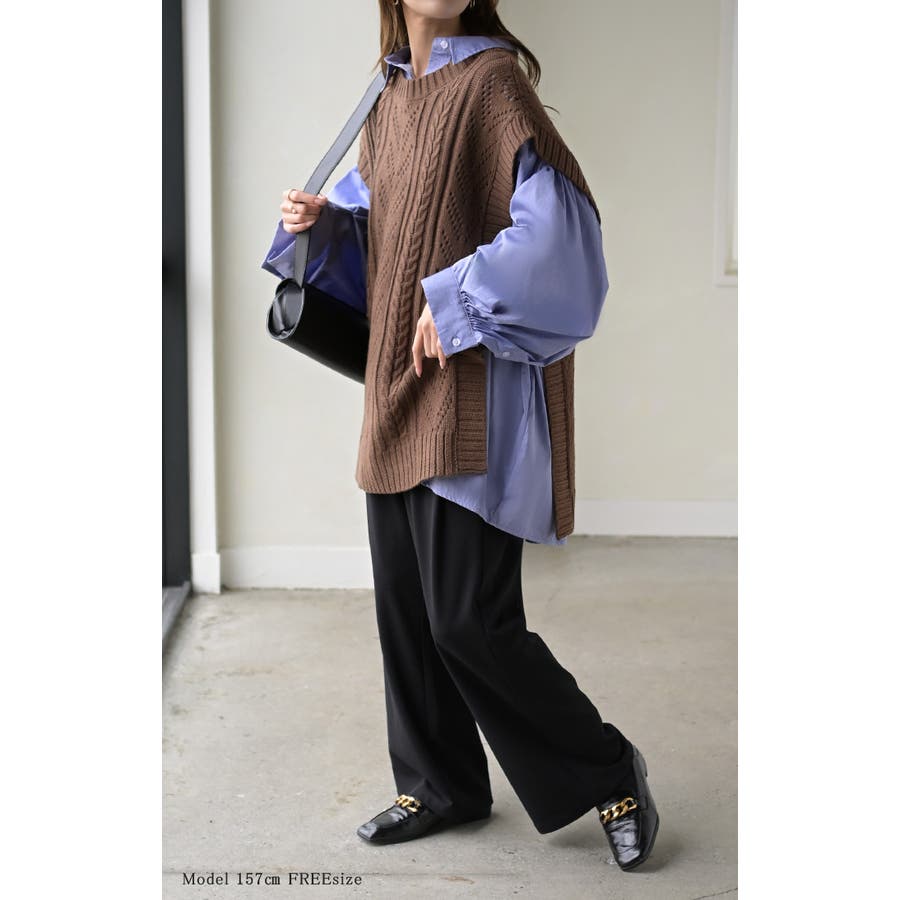 インナーとレイヤードするだけでスタイリングが完成するニットベストです。