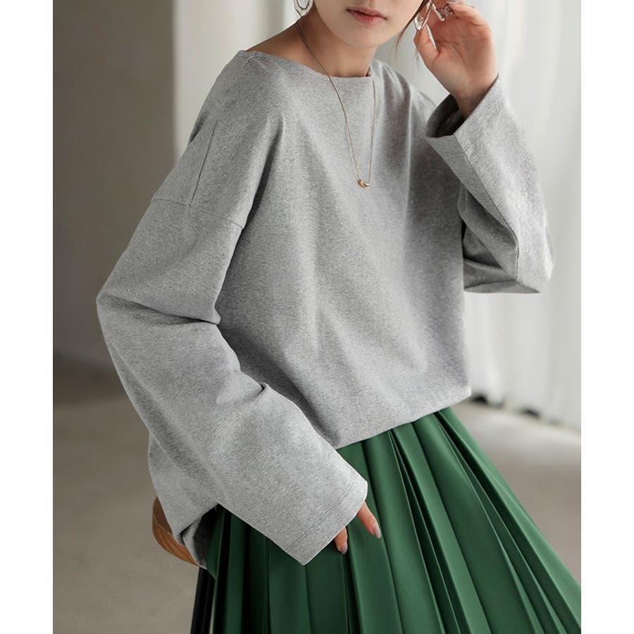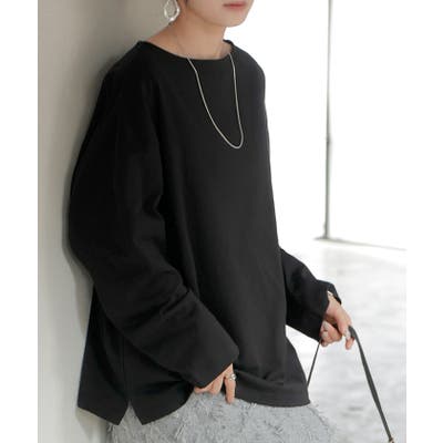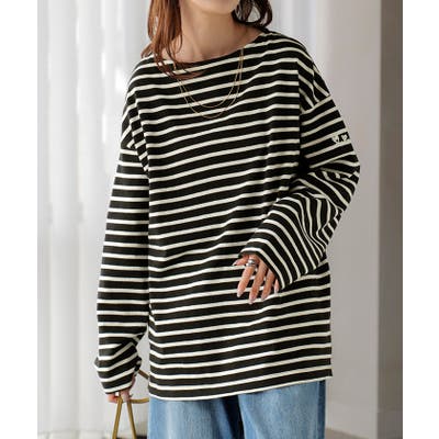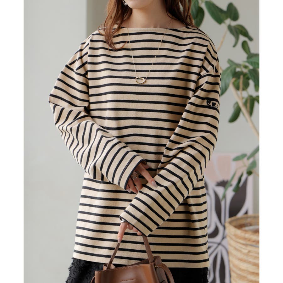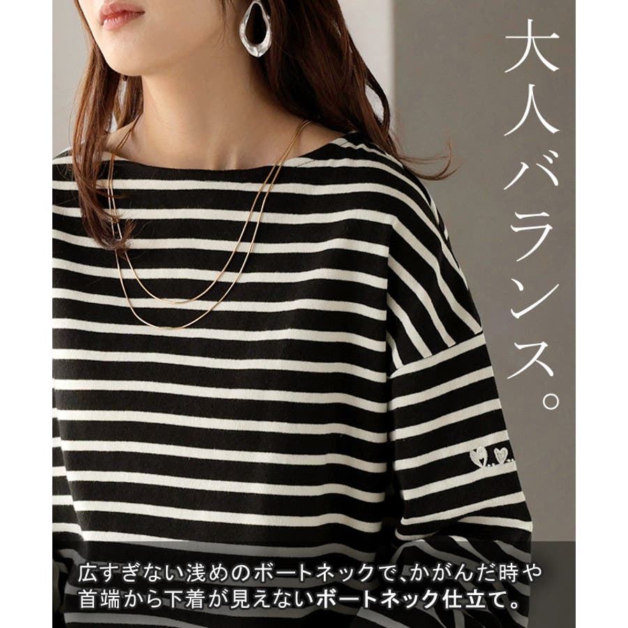 ハートのワンポイント刺繍がアクセントのボートネックカットソーです。
