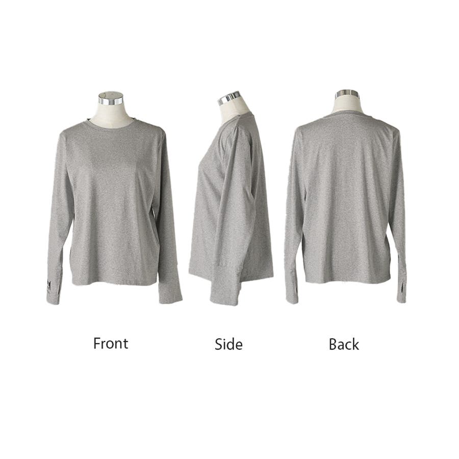 ロングシーズン着回せる指ぬきデザインの長袖カットソーです。