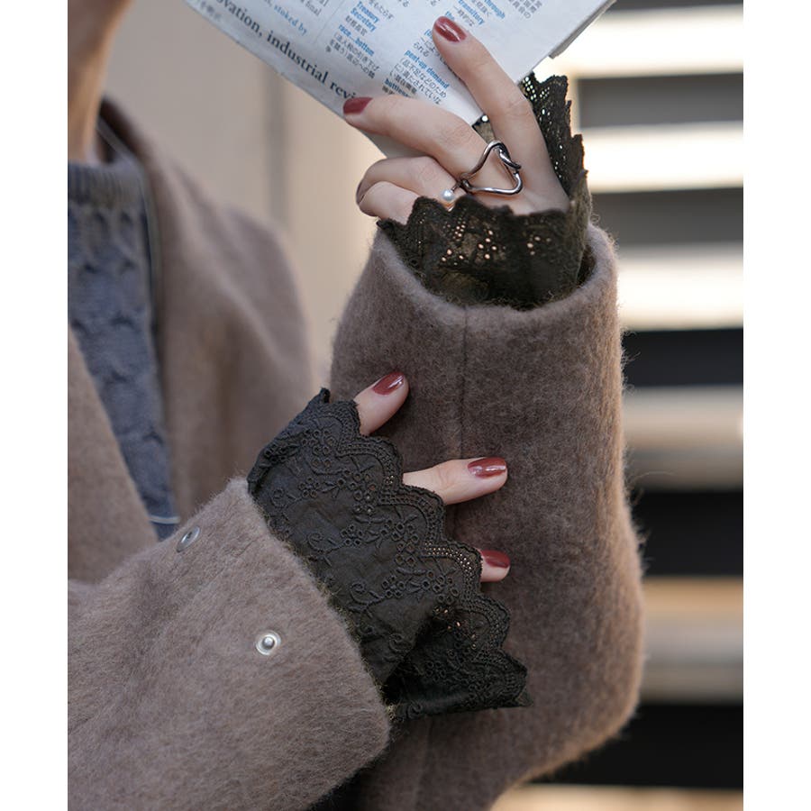 フェミニン感があふれるフリルレース付きの付け袖です。
